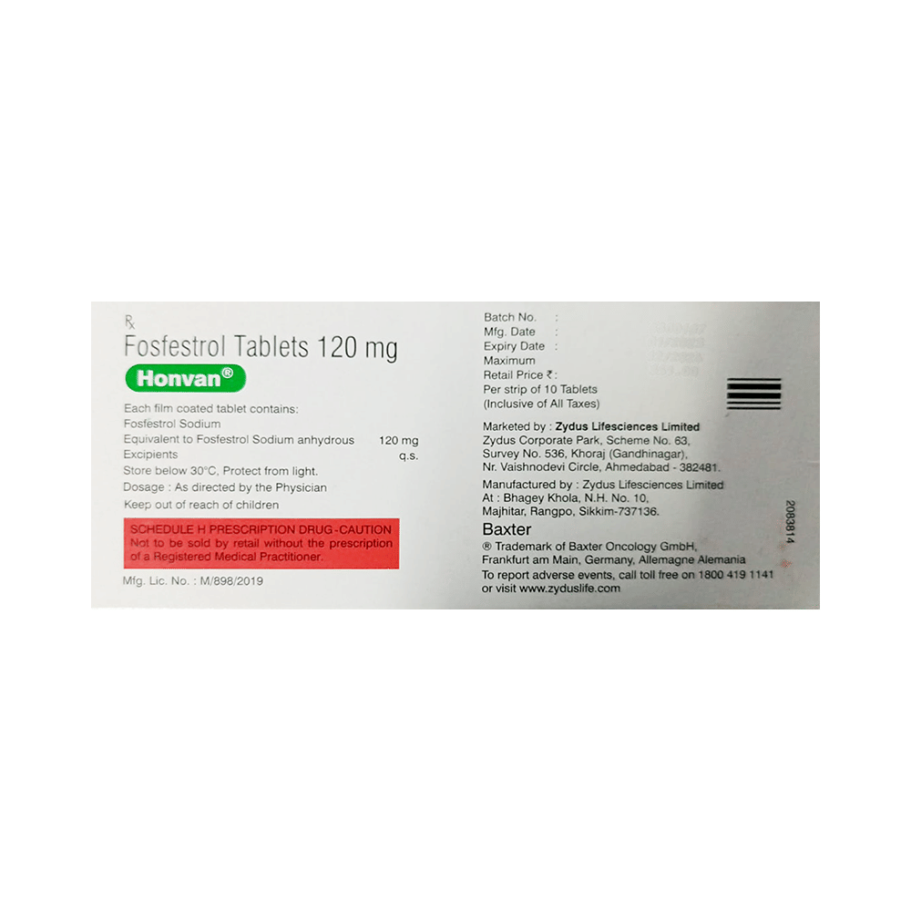 Honvan Tablet is a high-dose of estrogen therapy. It is used to treat prostate cancer. Honvan Tablet can be taken with or without food, but better to take it at a fixed time each day for better efficacy. It should be swallowed whole with the water. The dose and duration will be decided by your doctor so that you get the right amount to control your symptoms. If you have missed a dose, take it as soon as you remember it. Do not skip any dose and finish the full course of treatment. The treatment should not be stopped abruptly without consulting your doctor as this may affect the potency of this medicine.The most common side effects of this therapy are breast enlargement, abdominal pain, and liver problems (jaundice). If these bother you or appear serious, let your doctor know. There may be ways of reducing or preventing them. Before taking this medicine, it is important to tell your doctor if you are taking or have recently taken any other medicines for the same disease or other diseases. If you are pregnant or breastfeeding, you should tell your doctor before taking this medicine. Your doctor may suggest you some diagnostic or laboratory tests to know the effects and side effects of this medicine on your body.