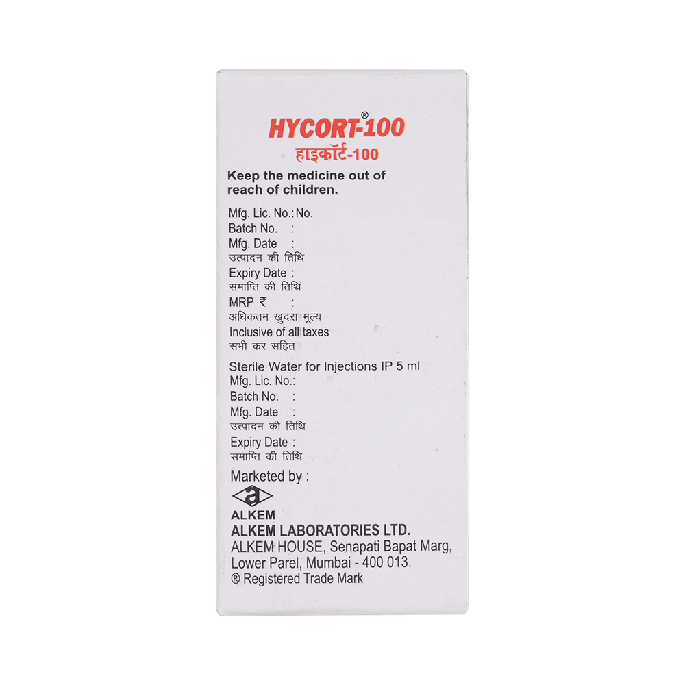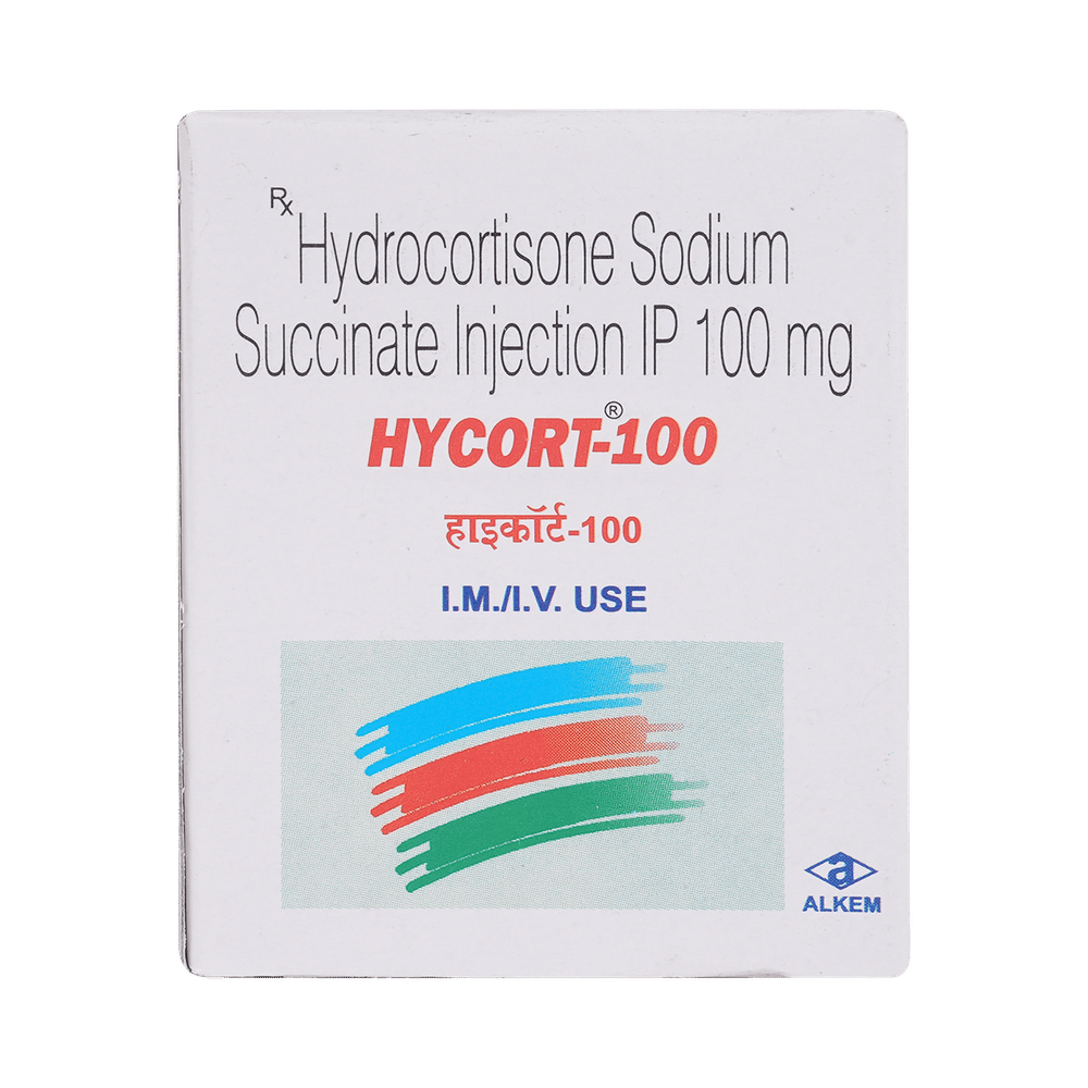 Hycort 100mg Injection belongs to a group of medicines called corticosteroids. It is used to treat a variety of diseases and conditions such as severe allergic reactions, allergic conditions, cancer, and skin and eye disorders. It is used for the treatment of conditions that need a quick response. Hycort 100mg Injection is administered by a healthcare professional. It is usually given to patients who are not able to take the tablet form of the medicine. Taking the medicine can make it harder for your body to fight off infections. Tell your doctor if you have any signs of infection such as a fever or sore throat. Also before taking this medicine, you should let your doctor know all the other medicines you are taking.The most common side effect of this medicine is intense pain and swelling in the joint where the injection was given. This usually gets better after a few days. It may also cause mood changes in some people. If any of these side effects bother you or if you experienced any symptoms which you feel are due to the use of this medicine, let your doctor know.Hycort 100mg Injection is contraindicated in patients with systemic fungal infections. Additionally, avoid the use of this medicine if you have a known history hypersensitivity to any components of this product. it is important for pregnant and breastfeeding mothers to ask the advice of their doctors before taking this medicine.