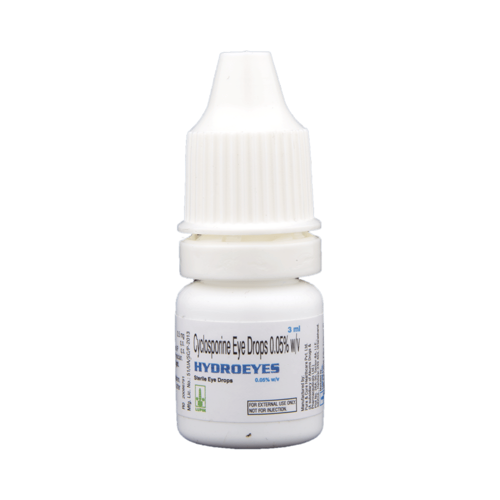 HydrOEYES 0.05% Eye Drop is a medicine used for the treatment of dry eyes. It allows for increased tear production by decreasing inflammation (swelling) in the eye. This keeps the eyes lubricated and reduces discomfort. Never use HydrOEYES 0.05% Eye Drop if the seal is broken before you use it for the first time. Wash your hands before using it and shake the bottle well before each use. Make sure you remove contact lenses if you wear them and wait for at least 15 minutes before putting them back. It can take several weeks before you notice an improvement in your dry eyes. Keep using it as prescribed.The most common side effects of this medicine are blurred vision and burning sensations in the eyes. If your vision is blurred or you have other changes in sight for a time, do not drive until your vision is clear. This is usually a short-term side effect, inform your doctor if it bothers you.It is not likely that other medicines you take by mouth or injection will affect the way it works. Talk to your doctor before using HydrOEYES 0.05% Eye Drop if you have used a similar medicine before and had an allergic reaction. Do not use this medicine if you are pregnant or breastfeeding.