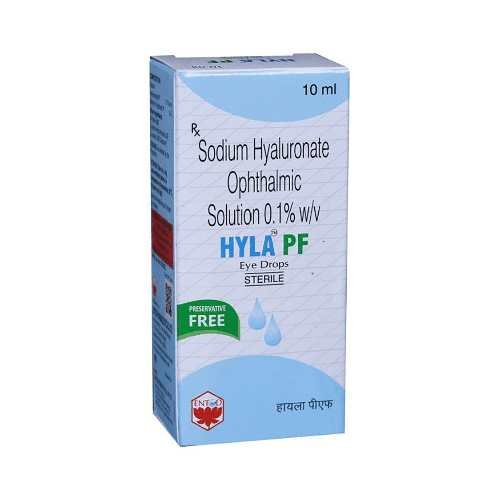 Hyla PF Eye Drop is a lubricant. It is used in the treatment of dry eyes. It moistens the eyes and provides relief from discomfort and temporary burning. It also helps in treating corneal burns by forming a soothing layer that reduces irritation and protects the damaged cornea. Hyla PF Eye Drop is usually instilled whenever needed. Take the dosage as advised by your doctor. Wait for at least 5-10 minutes before delivering any other medication in the same eye to avoid dilution. Do not use a bottle if the seal is broken before you open it, or if the solution changes color, or becomes cloudy.Common side effects of Hyla PF Eye Drop include blurred vision, redness, irritation in the eye, sensitivity to light, and watery eyes. Do not avoid notifying your doctor if any of these side effects persist or worsen.Always wash your hands and do not touch the end of the dropper, as this could infect your eye. It is generally safe to use Hyla PF Eye Drop with no common side effects. Let your doctor know if you experience any mild burning or irritation of your eyes.Do not drive, use machinery, or do any activity that requires clear vision until you are sure you can do it safely. Consult your doctor if your condition does not improve or if the side effects bother you. People with narrow-angle glaucoma should not use this medicine.