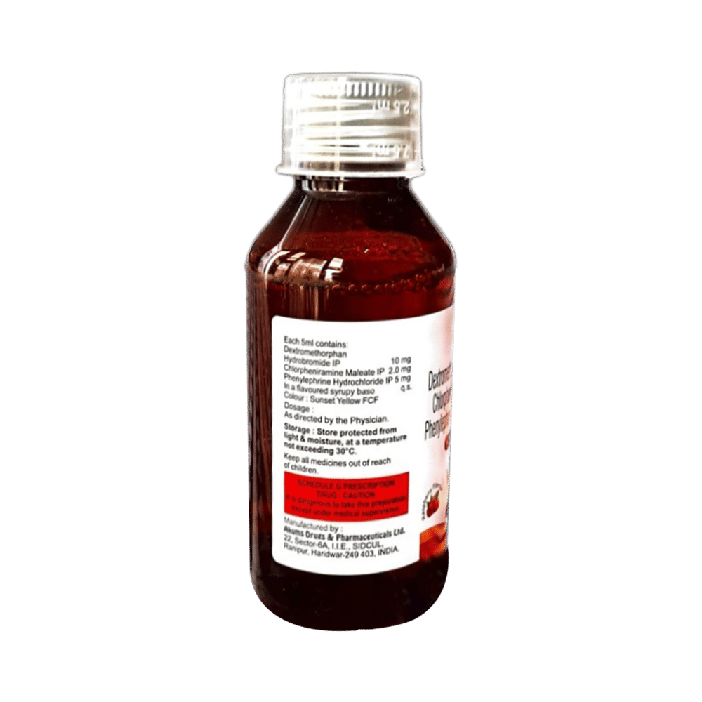 Salt Composition: Phenylephrine (5mg/5ml) + Chlorpheniramine Maleate (2mg/5ml) + Dextromethorphan Hydrobromide (10mg/5ml)