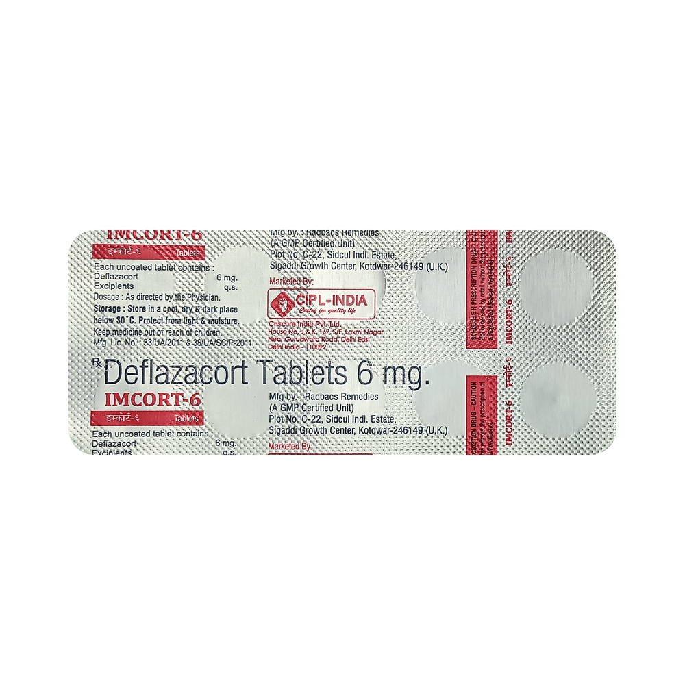 Imcort 6 Tablet belongs to a group of medicines called steroids. It is used for the treatment of various diseases and conditions such as inflammatory conditions and autoimmune conditions. Imcort 6 Tablet works by inhibiting the release of substances that cause swelling or by changing how the immune system works. It can be taken on an empty stomach or after food. Taking the medicine regularly at the right times increases its effectiveness. It is important to keep taking the medicine regularly until your doctor tells you it is safe to stop.Use of this medicine may cause some common side effects such as increased appetite, weight gain, frequent urge to urinate, Cushing syndrome, cough, upper respiratory tract infection, abnormal hair growth, obesity, and nasopharyngitis. If any of these side effects bother you, let your doctor know.Imcort 6 Tablet can make it harder for you to fight off infections. Tell your doctor if you have any signs of infection such as a fever or sore throat. Before taking the medicine, you should let your doctor know of all the other medicines you are taking. Pregnant and breastfeeding women should consult their doctors before taking the medicine.