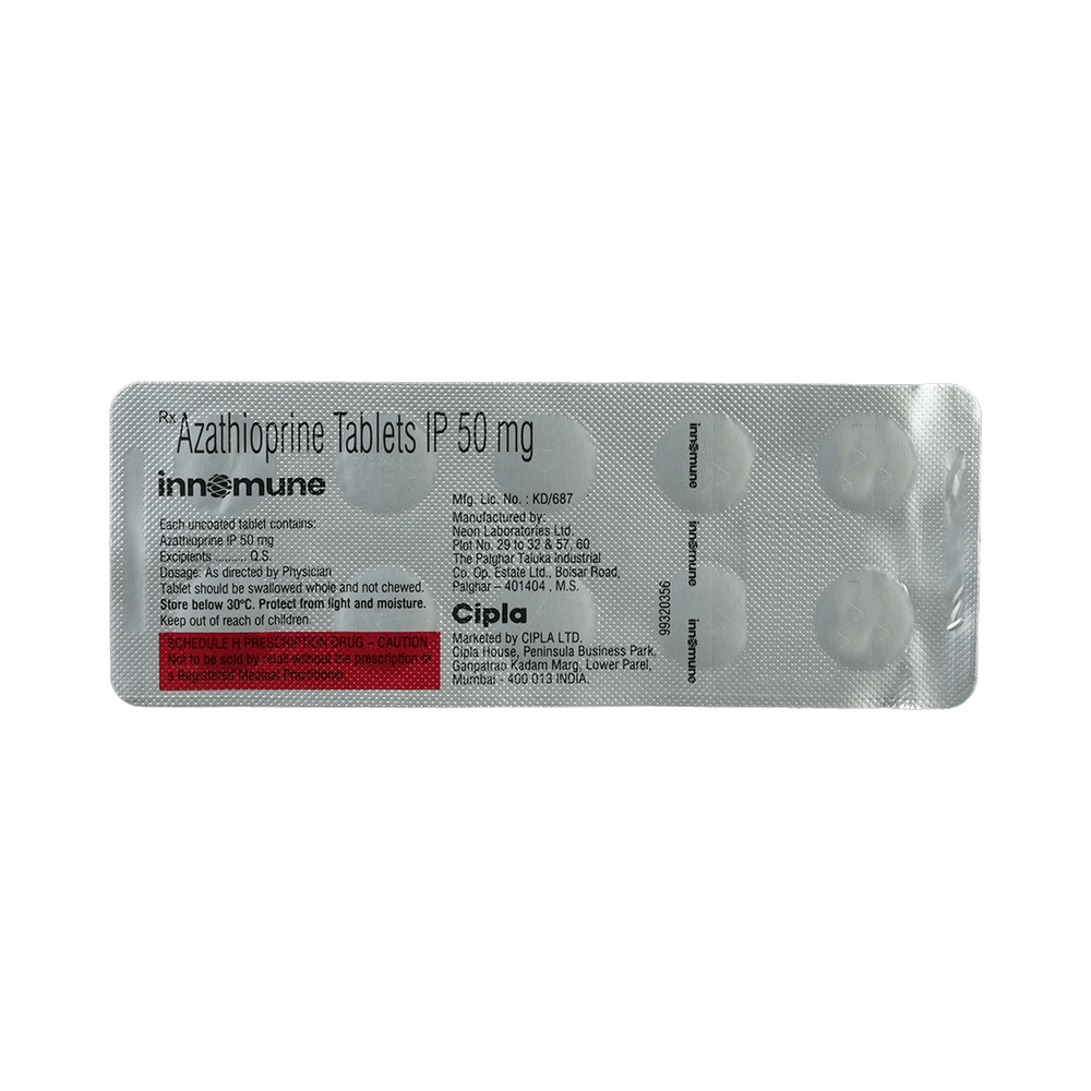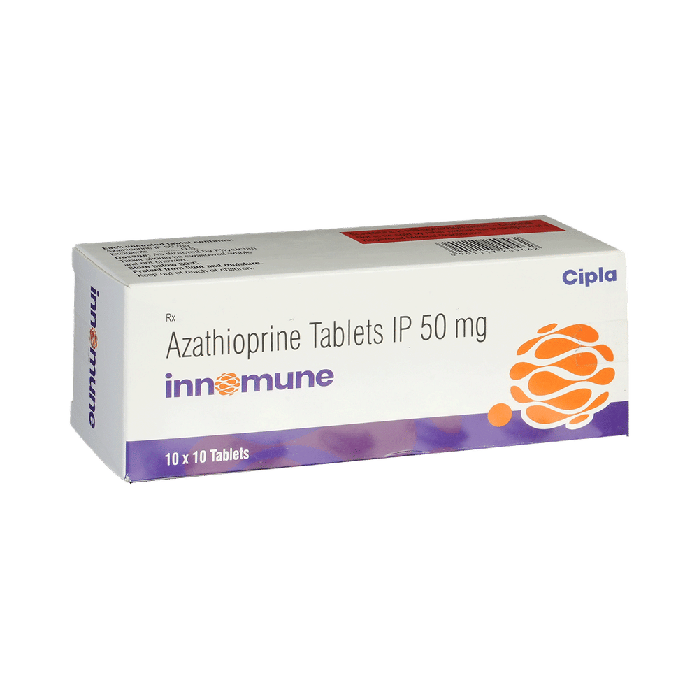 Innomune Tablet belongs to a group of medicines called immunosuppressants. It is used with other medicines to prevent your body from rejecting an organ (such as a kidney, heart, or liver) after a transplant. It is also used in the treatment of rheumatoid arthritis. The dose of Innomune Tablet and how often you need to take it will depend on whether you have had a transplant or are being treated for rheumatoid arthritis. Follow your doctor’s instructions on this. You can take it with or without food. Take the medicine regularly to get the most benefit and keep taking it even if you feel well. If you stop taking it, the risk of organ rejection may increase, and if you're using it for rheumatoid arthritis, your symptoms may not improve.The most common side effects of Innomune Tablet are nausea and reduction of white blood cells and bone marrow function. Because it suppresses your immune system, you may catch infections easily. There is also an increased risk of developing some cancers for this reason. You should ask your doctor about side effects that may require urgent medical attention.Innomune Tablet can cause birth defects and miscarriages, so do not take it if you are pregnant, planning to become pregnant, or breastfeeding. You should talk to your doctor before taking this medicine if you have any signs of infection or any unexpected bruising or bleeding. Let your doctor also know what other medications you are taking, as some may interact with this medicine and affect the way it works. You will have regular tests to check for any changes in the number of your blood cells.