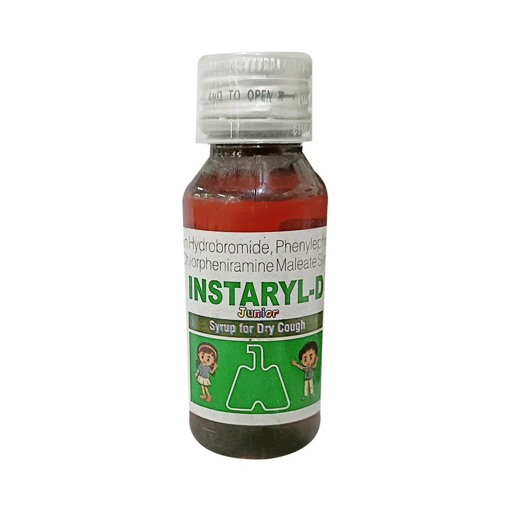 Instaryl-D Junior Syrup is a medicine used in the treatment of common cold and cough. It can provide quick relief from cough and common cold symptoms like runny nose, stuffy nose, sneezing, watery eyes, and congestion or stuffiness. Instaryl-D Junior Syrup is taken with or without food in a dose and duration as advised by the doctor. The dose you are given will depend on your condition and how you respond to the medicine. You should keep taking this medicine for as long as your doctor recommends. If you stop treatment too early your symptoms may come back and your condition may worsen. Let your healthcare team know about all other medications you are taking as some may affect, or be affected by this medicine.Common side effects of this medicine include headache, sedation, double vision, vomiting, diarrhea, dry mouth, and nausea. Most of these are temporary and usually resolve with time. Contact your doctor straight away if you are at all concerned about any of these side effects. This medicine can also cause sleepiness, so do not drive or do anything that requires mental focus until you know how this medicine affects you. Avoid drinking alcohol while taking this medicine as it can worsen your sleepiness.Never support self-medication or recommend your medicine to another person. It is beneficial to have plenty of fluids while taking this medication. Before taking this medicine, you should tell your doctor if you are pregnant, planning pregnancy or breastfeeding. You should also tell your doctor if you have any kidney or liver diseases so that your doctor can prescribe a suitable dose for you.
