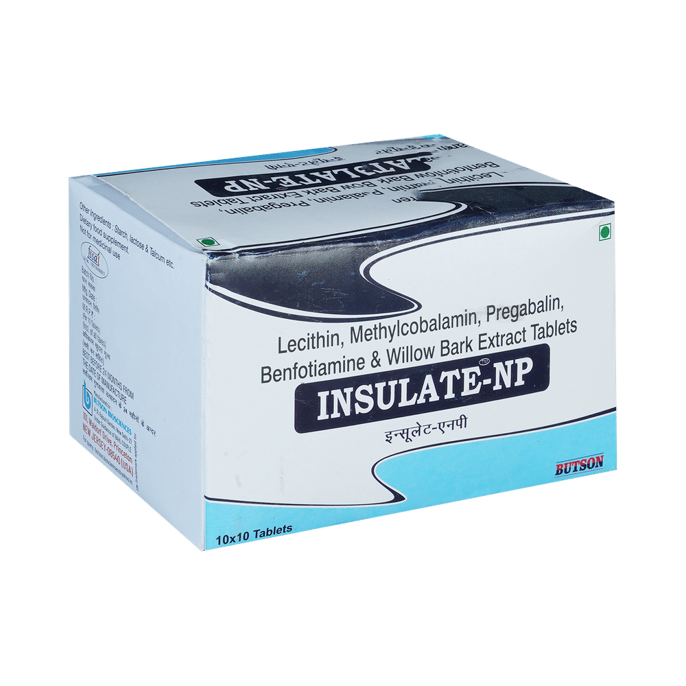 Insulate-NP Tablet is a combination medicine used for the treatment of neuropathic pain. This medicine decreases pain by modulating calcium channel activity of the nerve cells. Insulate-NP Tablet can be taken with or without food, preferably at bedtime. It is advised to take medicine at the same time each day as this helps to maintain a consistent level of medicine in the body. Take this medicine in the dose and duration advised by your doctor. If you miss a dose of this medicine, take it as soon as you remember. Finish the full course of treatment even if you feel better. It is important that this medication is not stopped suddenly without talking to the doctor.Some common side effects of this medicine are nausea, edema, weight gain and dryness in the mouth. It may also cause dizziness and sleepiness, so do not drive or do anything that requires mental focus until you know how this medicine affects you. It is important to inform your doctor if you develop any unusual changes in mood or behavior, new or worsening depression, or suicidal thoughts.Before taking the medicine you should tell your doctor if you are pregnant, planning to become pregnant, or breastfeeding. Inform your doctor if you are taking any other medicines, as some medicines (including antacids and alcohol) do affect the way it works and can increase the chances of side effects.