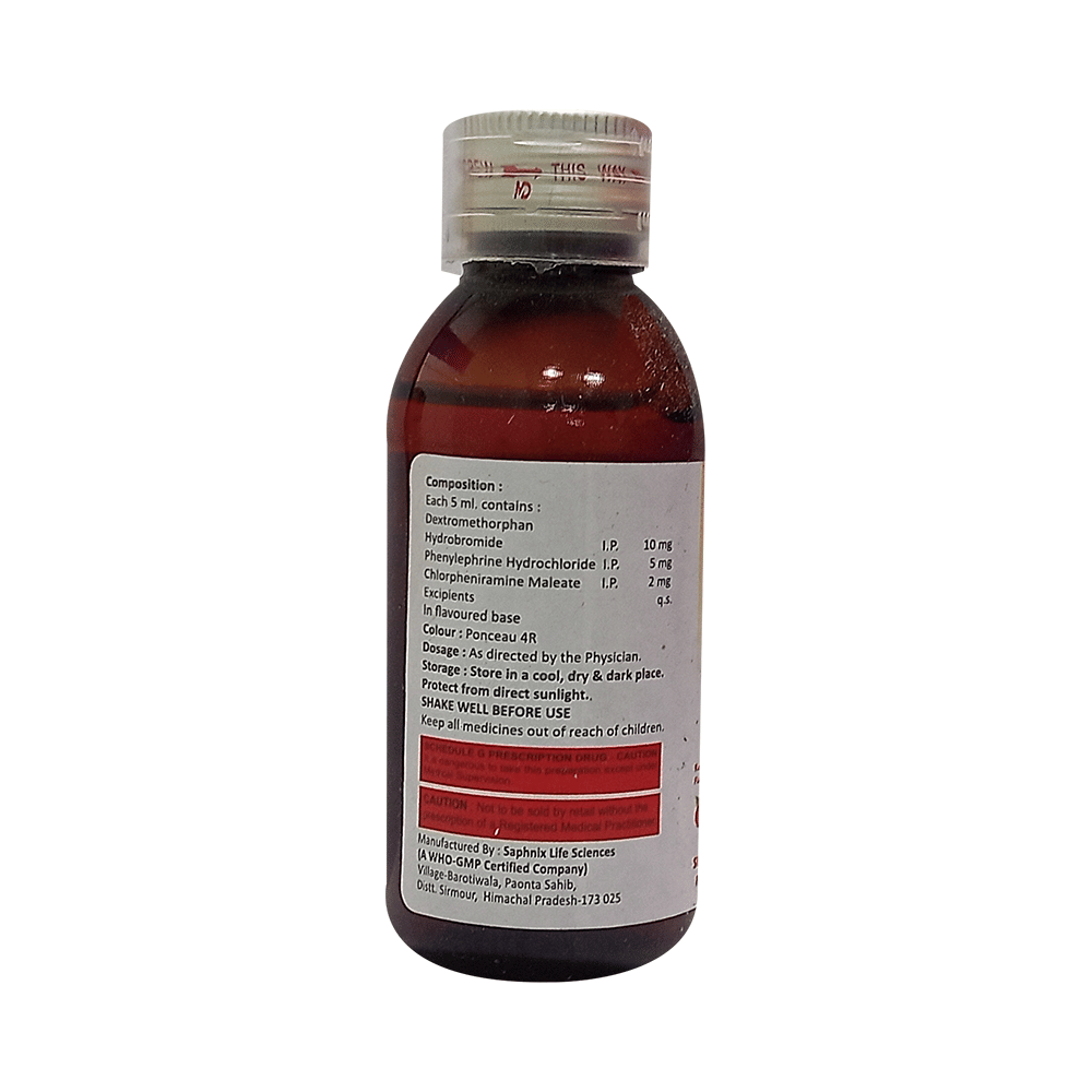 Salt Composition: Phenylephrine (5mg/5ml) + Chlorpheniramine Maleate (2mg/5ml) + Dextromethorphan Hydrobromide (10mg/5ml)