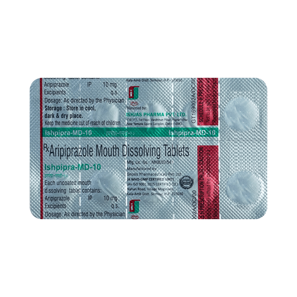 If you miss a dose of Ishpipra 10mg Tablet MD, take it as soon as possible. However, if it is almost time for your next dose, skip the missed dose and go back to your regular schedule. Do not double the dose.