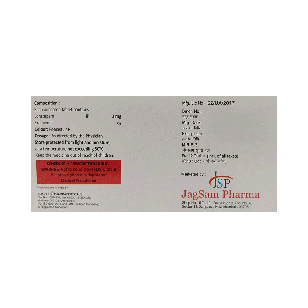 In Treatment of Anxiety disorderJaglor 3mg Tablet helps relieve symptoms of many anxiety disorders including obsessive-compulsive disorder and generalised anxiety disorder by increasing the level of a chemical called GABA in your brain. This prevents abnormal symptoms of anxiety such as restlessness, tiredness, difficulty concentrating, feeling irritable and sleep problems. It helps you feel calm with a better ability to deal with problems. Exercise and a healthy diet can also improve your mood. Keep taking the medicine until your doctor advises you to stop.In Treatment of Short term anxietyJaglor 3mg Tablet reduces the symptoms of excessive anxiety and worry that may arise in stressful conditions such as an exam or job interview. It can also reduce feelings of restlessness, tiredness, difficulty concentrating and feeling irritable. This will therefore help you go about your daily activities more easily and be more productive. Keep taking this medicine even if you feel well. Stopping suddenly can cause serious problems.show moreshow less
