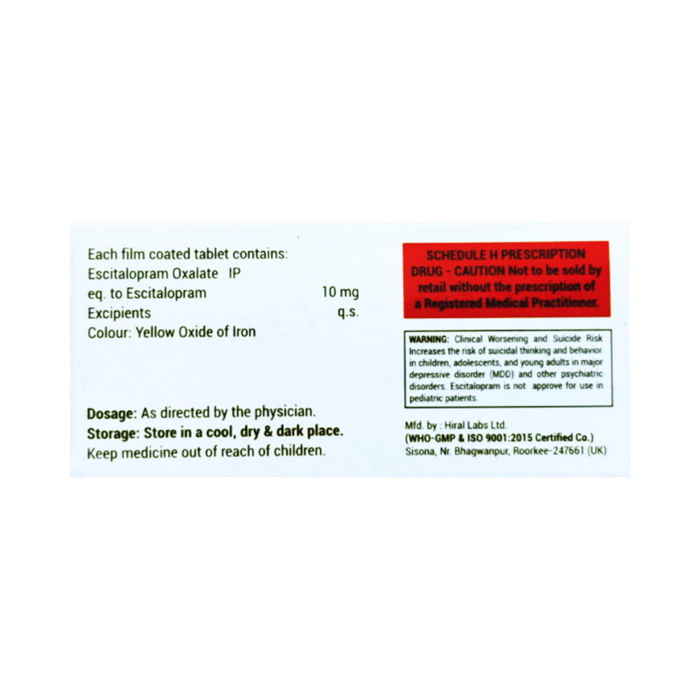 Joycita 10 Tablet is widely prescribed to treat depression and other mental health conditions like anxiety, panic disorder, and obsessive-compulsive disorder. It is a type of antidepressant known as a selective serotonin reuptake inhibitor (SSRI). Joycita 10 Tablet helps recover from depression by improving mood and relieving anxiety and tension. It can be taken with or without food. The dose and how often you need it will be decided by your doctor based on the amount needed to control your symptoms. Your doctor may start you on a lower dose and increase it gradually. Do not change the dose or stop taking it without talking to your doctor, even if you feel well. Doing so may make your condition worse or you may suffer from unpleasant withdrawal symptoms such as anxiety, restlessness, palpitations, dizziness, sleep disturbances.To get the most benefit, take this medicine regularly at the same time each day. Your doctor may advise you to take it in the morning if you have trouble sleeping. It may take a few weeks before you start feeling better. Let your doctor know if you do not see any improvement even after 4 weeks.Some common side effects of this medicine include nausea, fatigue, increased sweating, insomnia (difficulty in sleeping), decreased sexual drive, delayed ejaculation, and women may experience difficulties achieving orgasm. Some people may experience sleepiness after taking this medicine. Let your doctor know straight away if you develop any sudden worsening of mood or any thoughts about harming yourself.Before taking Joycita 10 Tablet, you should tell your doctor if you have epilepsy (seizure disorder or fits), diabetes, liver or kidney disease, any heart problems, or are currently taking medicines for depression known as MAO inhibitors. These may affect your treatment. Please tell your doctor about all the medicines you are taking to make sure you are safe.