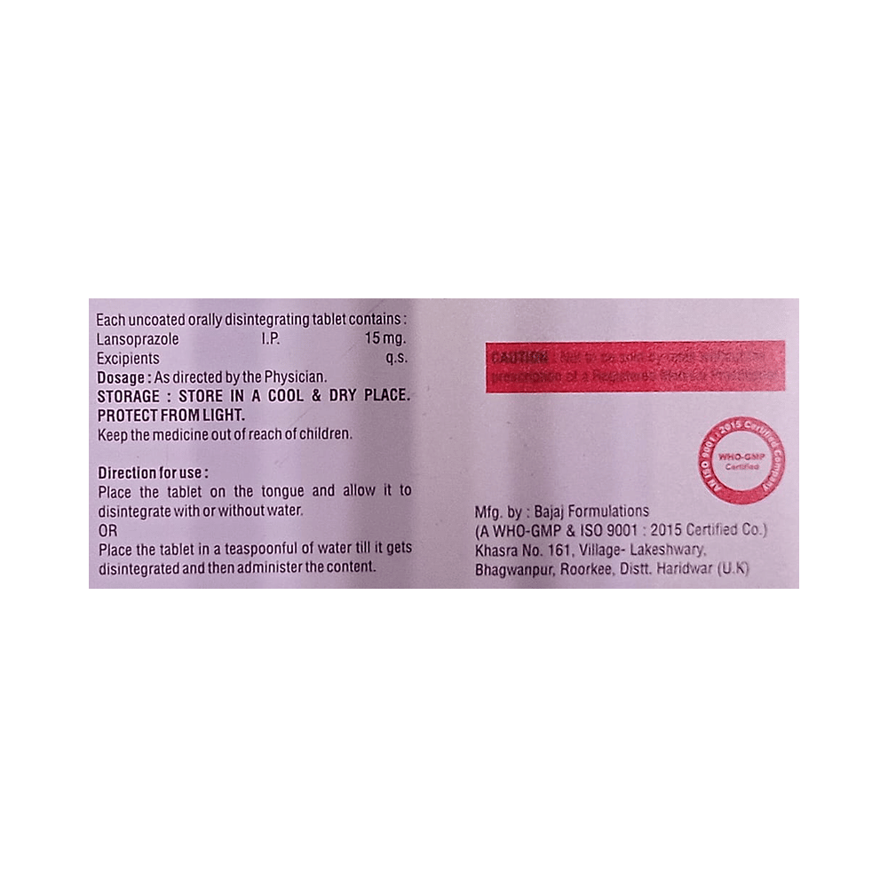 Salt Composition: Lansoprazole (15mg)