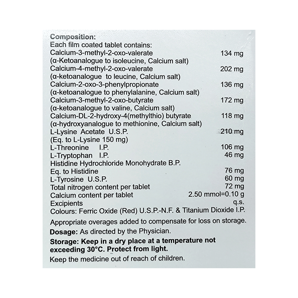 In Treatment of Chronic kidney diseaseChronic kidney disease (CKD) refers to the loss of normal kidney function over a long period. CKD progresses gradually over a few years but may become permanent if left untreated. Juxtalfa-DS Tablet is a combination of essential amino acids, which, when combined with a low or very low protein diet, slows down the progression of CKD and improves the quality of life.