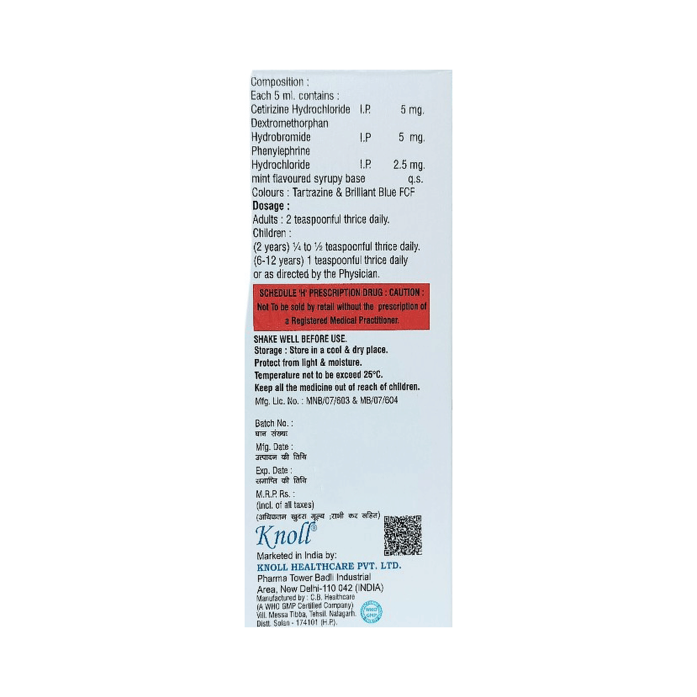 Salt Composition: Cetirizine (5mg/5ml) + Dextromethorphan Hydrobromide (5mg/5ml) + Phenylephrine (2.5mg/5ml)
