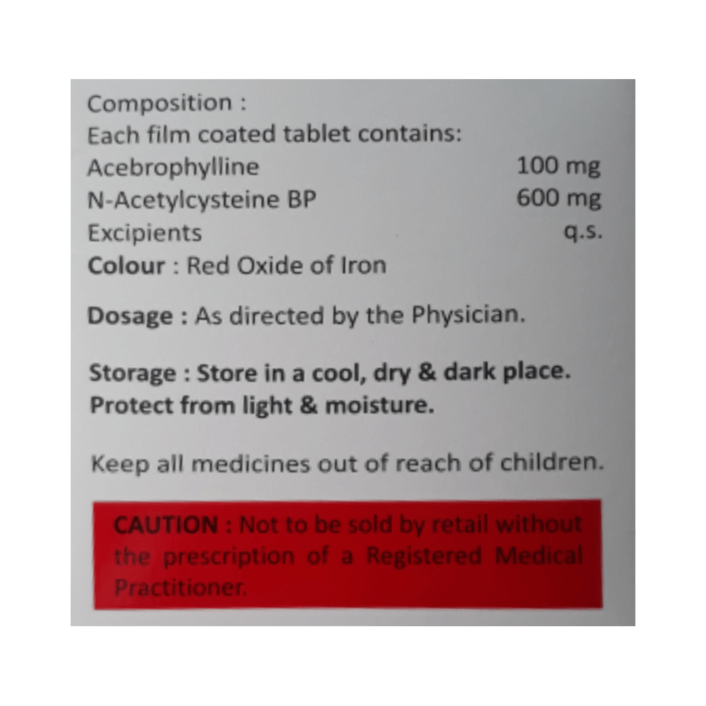 Salt Composition: Acebrophylline (100mg) + Acetylcysteine (600mg)