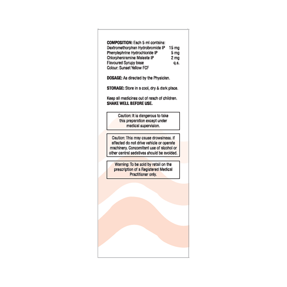 Salt Composition: Phenylephrine (5mg/5ml) + Chlorpheniramine Maleate (2mg/5ml) + Dextromethorphan Hydrobromide (15mg/5ml)