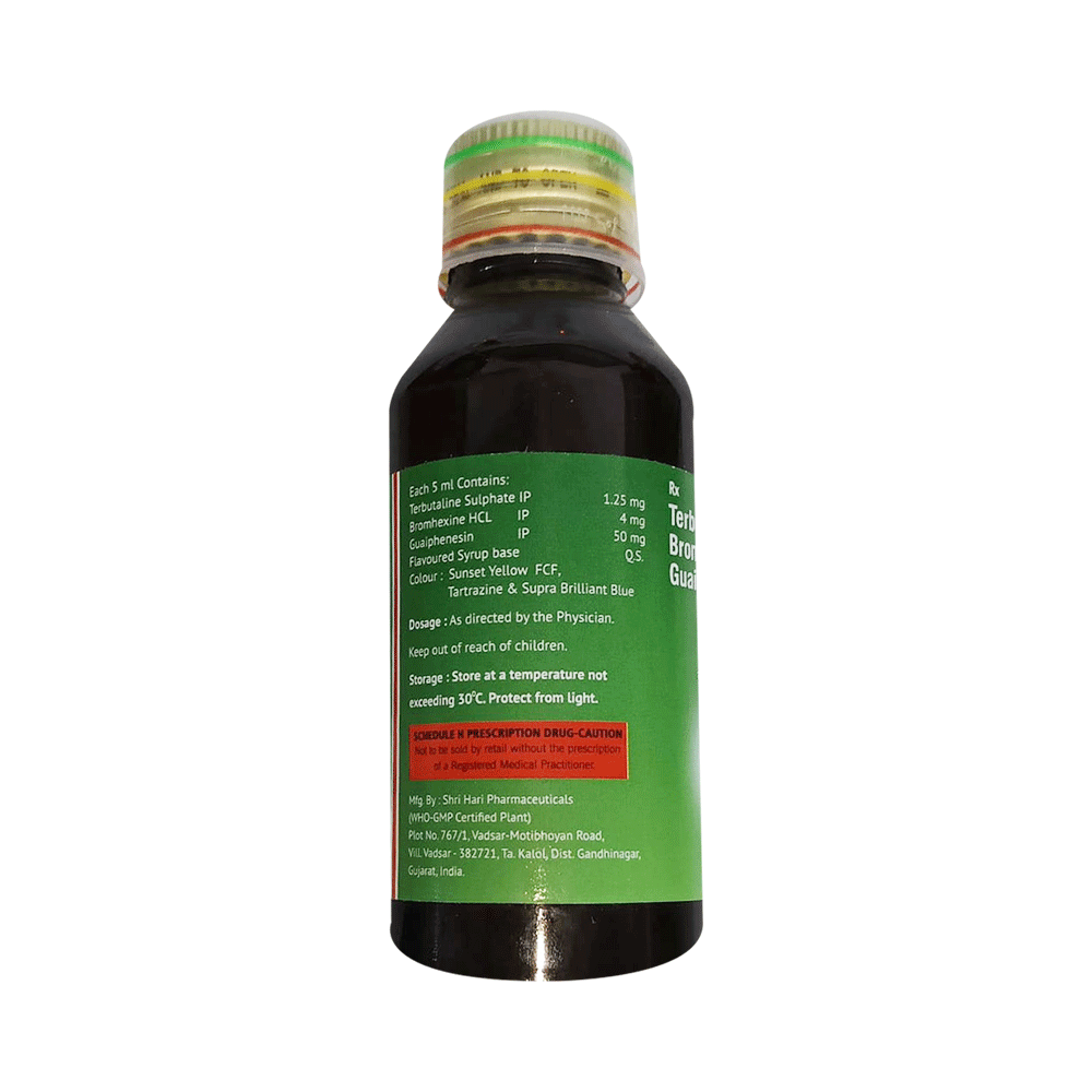 Salt Composition: Guaifenesin (50mg/5ml) + Terbutaline (1.25mg/5ml) + Bromhexine (4mg/5ml)