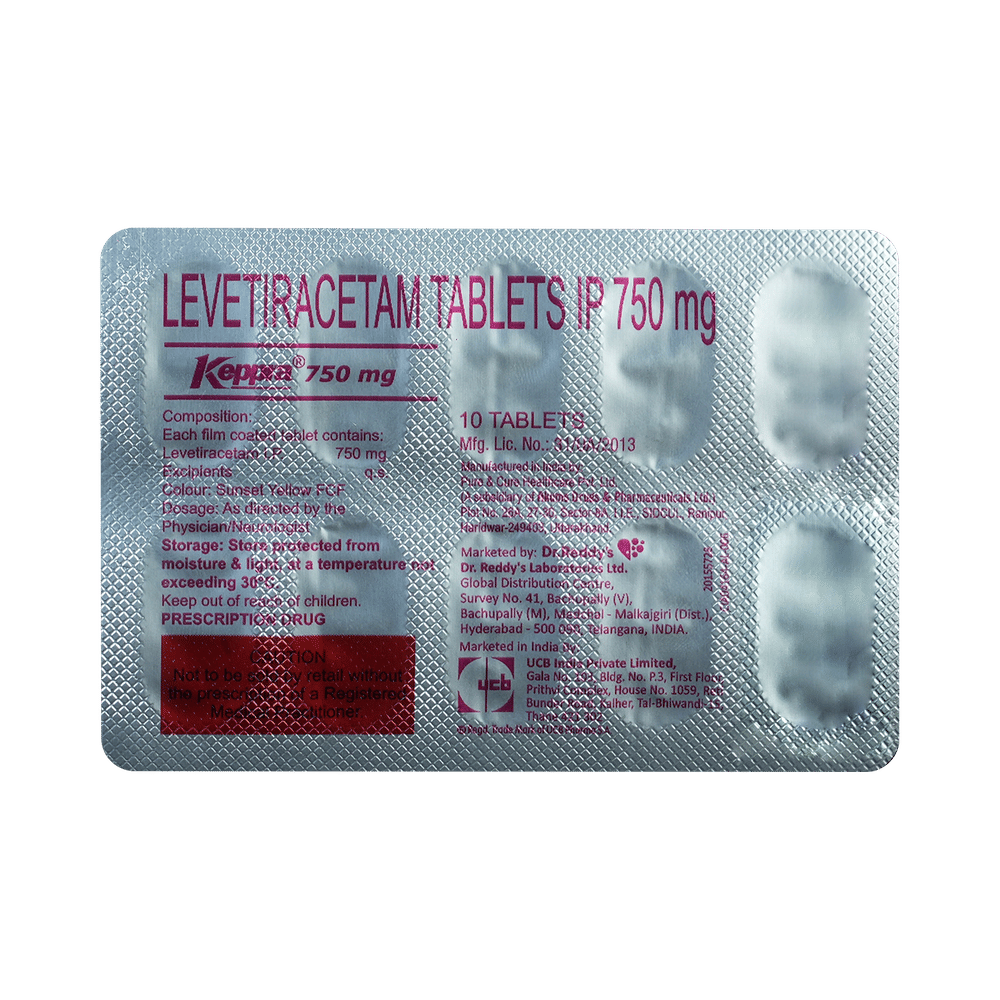 Keppra 750mg Tablet is an anti-epileptic medicine used to treat seizures (fits) in epilepsy. It can be used alone or along with other medicines. It helps to prevent seizures for as long as you continue to take it. Keppra 750mg Tablet suppresses the abnormal electrical activity in the brain. You can take it with or without food but try to take it at the same time each day to get the most benefit. The dose will depend on your condition and how you respond to the medicine. Your doctor will advise the right dose for you. It is generally advised as a long-term treatment. You should continue taking it for as long as your doctor has told you to, even if you feel well. If you stop or miss doses your seizures could get worse.Some common side effects of this medicine include headache, irritation, sleepiness, behavior changes, aggressive behavior, and decreased appetite. Side effects are more common during the first few weeks and usually lessen as your body gets used to the medicine. Most of these side effects do not need medical attention, but some of them can be serious. A small number of people being treated with this medicine have had thoughts of harming or killing themselves. Contact your doctor if your mood changes for the worse.Before taking it, you should tell your doctor if you have kidney problems, depression, or suicidal thoughts and if you are pregnant, planning to become pregnant, or breastfeeding. Your doctor may suggest regular blood tests to monitor your kidney function while taking this medicine.
