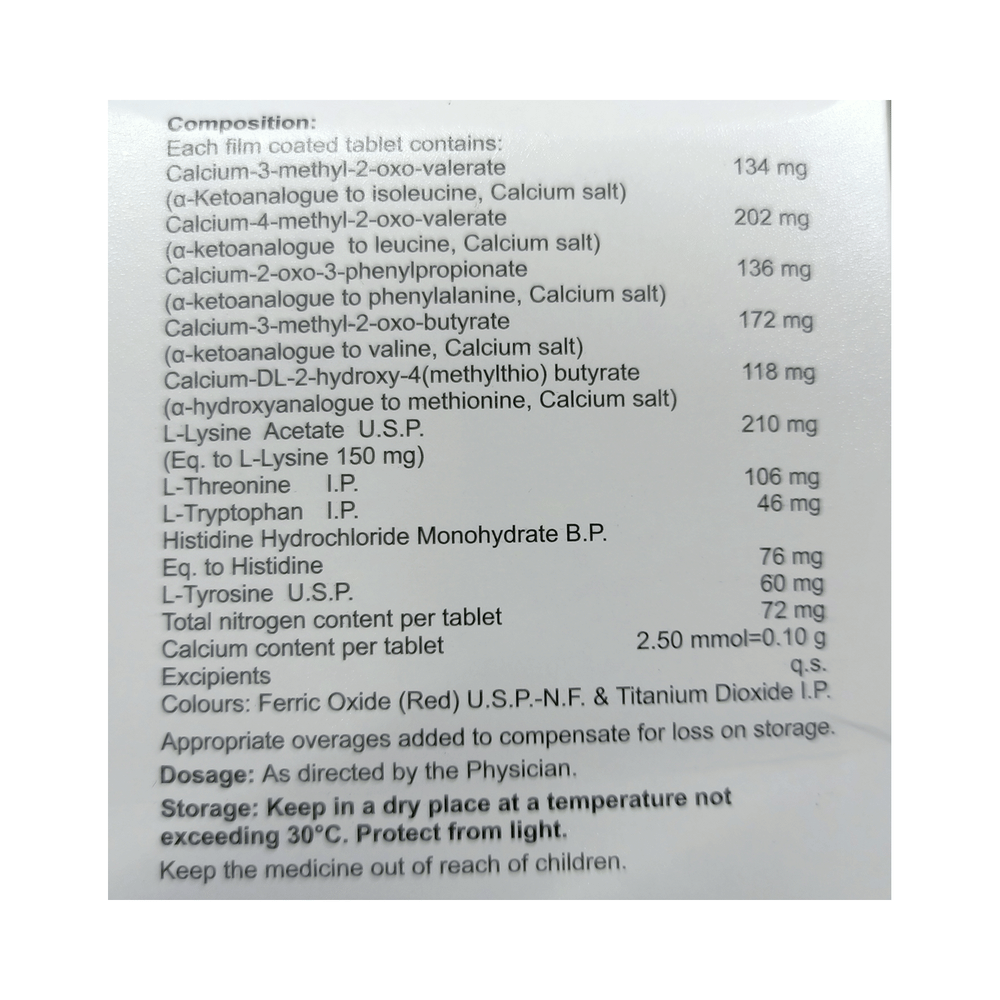 Ketoeasy-DS Tablet belongs to a class of drugs called nutritional supplements. It follows the same catabolic pathways as amino acids and works by improving the metabolism of protein in the body, thereby improving renal function.