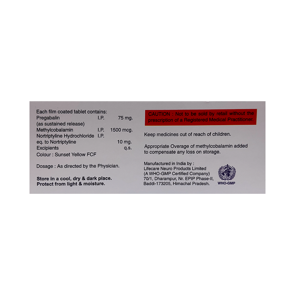Salt Composition: Pregabalin (75mg) + Nortriptyline (10mg) + Methylcobalamin (1500mcg)
