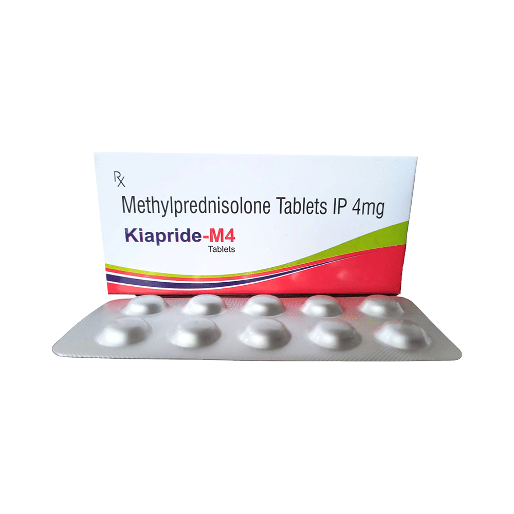 In Treatment of Allergic conditionsKiapride-M4 Tablet is used to treat different inflammatory and allergic conditions including arthritis, lupus, psoriasis, ulcerative colitis which affect the skin, blood, eyes, lungs, stomach, and nervous system. It works by lowering your immune system’s response to these conditions thereby reducing symptoms such as swelling, pain, itching and other allergic-type reactions.This medicine is given orally (by mouth). You should always take it as it has been prescribed for you. Do not stop taking it without your doctor’s advice. This can cause unpleasant withdrawal symptoms. Because this medicine weakens your immune system, you should avoid being near people who are ill or have infections.In Treatment of Systemic lupus erythematosus (SLE)Systemic lupus erythematosus (SLE) is an autoimmune disease. In this disease, the immune system of the body mistakenly attacks healthy tissue. It can affect the skin, joints, kidneys, brain, and other organs. Kiapride-M4 Tablet prevents the release of substances in the body that cause inflammation. It lowers your immune system’s response and reduces symptoms such as swelling, pain, itching and other allergic-type reactions.In Treatment of Skin disordersKiapride-M4 Tablet prevents the release of substances in the body that cause inflammation. It can be used to treat different inflammatory and allergic conditions of the skin such as eczema and psoriasis. It works by lowering your immune system’s response to these conditions thereby relieving symptoms such as swelling, pain, itching and other allergic-type reactions.In Treatment of Eye disordersKiapride-M4 Tablet helps relieve symptoms of eye infections such as redness, swelling, itching and watering of eyes. This medicine works by decreasing the production of certain chemicals that cause inflammation of the eyes. This will make it easier for you to go about your daily activities. Use it as prescribed to get the most benefit. If you see no improvement even after a week, talk to your doctor.In Treatment of Rheumatic disorderRheumatic disorder is an autoimmune condition where your body’s immune system (which usually fights bacteria and viruses) attacks your body’s own cells. Kiapride-M4 Tablet stops that from happening and can relieve the symptoms of this condition such as pain, swelling, and stiffness in your joints. It can also slow down joint damage, reduce disability, and enable you to be as active for as long as possible. It can take several weeks or months to notice the effect of the medicine. You should continue taking it until your doctor says it is okay to stop using the medicine.show moreshow less