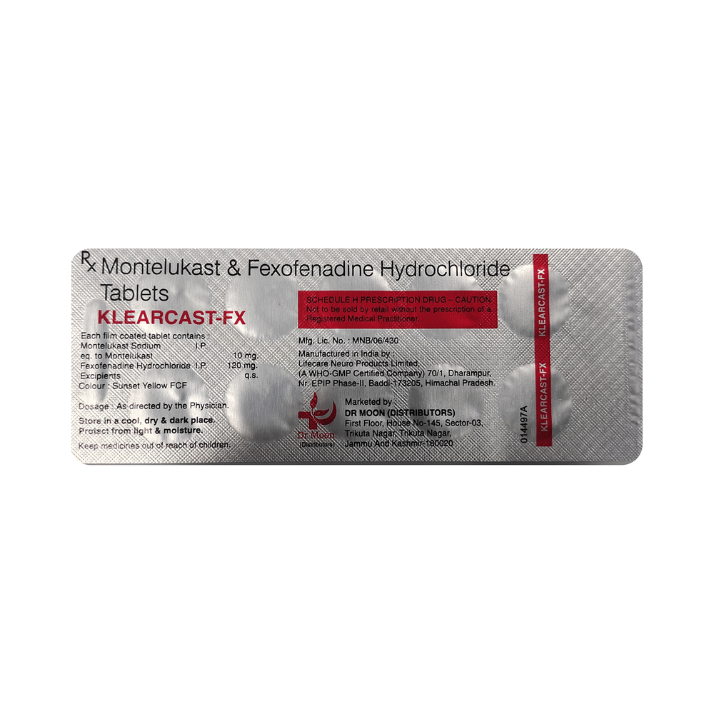In Treatment of Sneezing and runny nose due to allergiesKlearcast-FX Tablet is a combination medicine that provides relief from symptoms such as blocked or runny nose, sneezing and itchy or watery eyes. This will make it easier for you to go about your daily activities. It rarely has any serious side effects and you may only need to take it on days you have symptoms. If you are taking it to prevent getting symptoms you should use it regularly to get the most benefit.