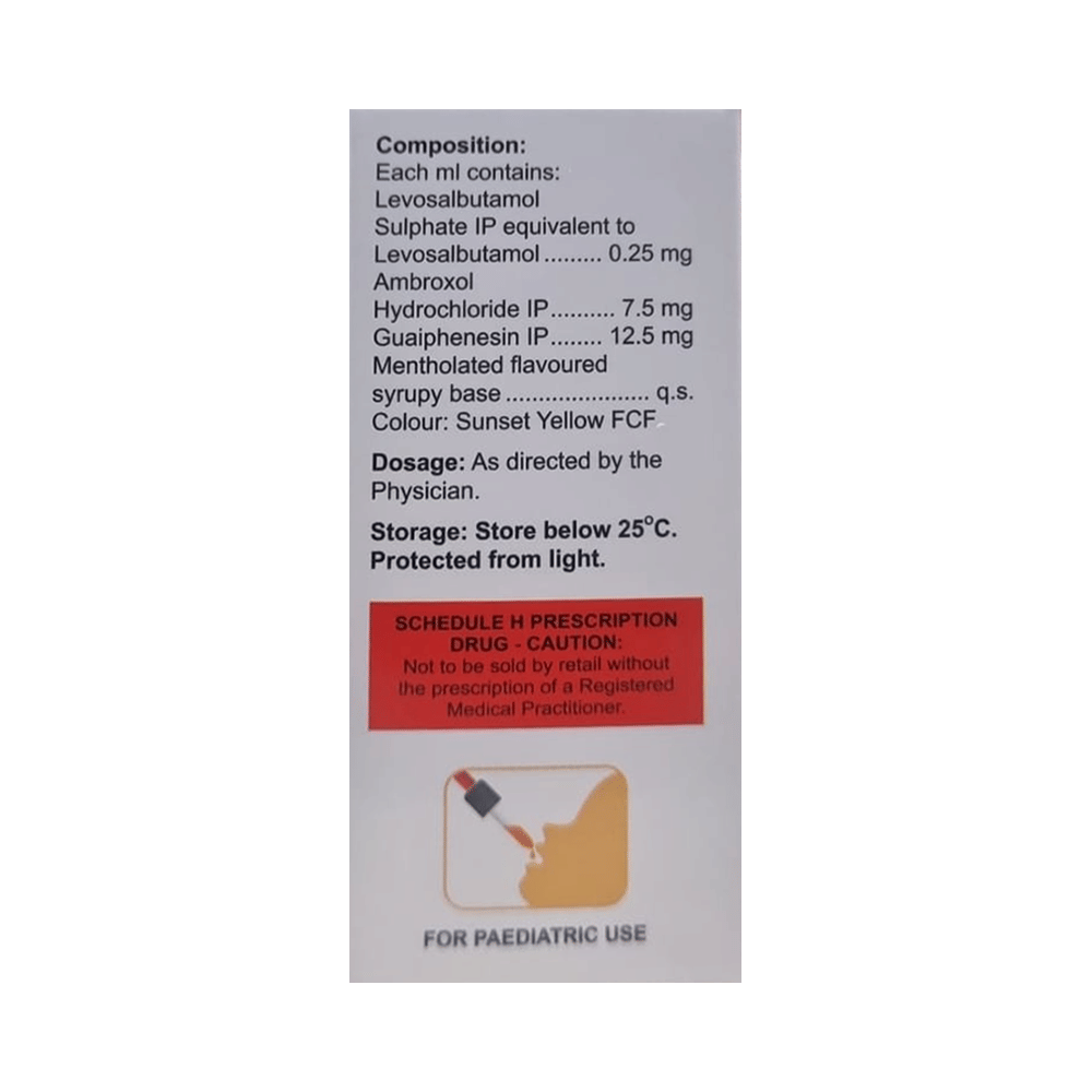Salt Composition: Ambroxol (7.5mg/ml) + Levosalbutamol (0.25mg/ml) + Guaifenesin (12.5mg/ml)