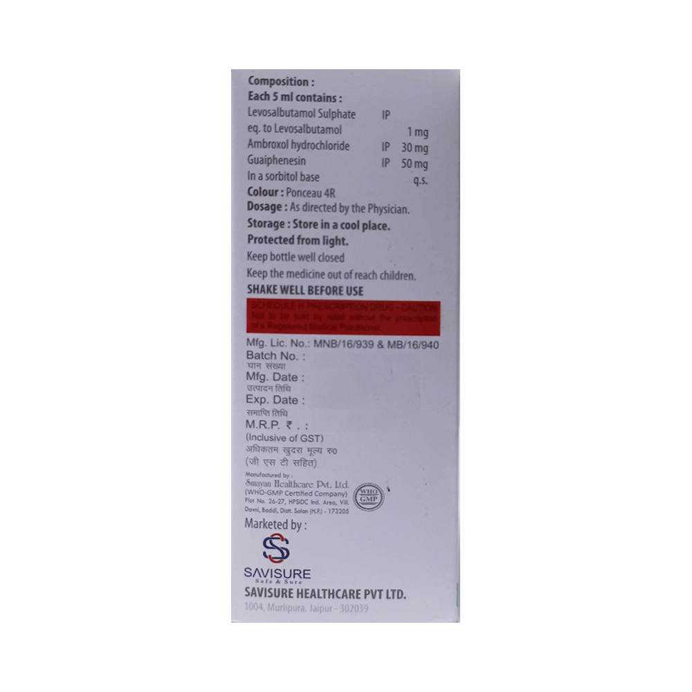 Salt Composition: Levosalbutamol (1mg/5ml) + Ambroxol (30mg/5ml) + Guaifenesin (50mg/5ml)