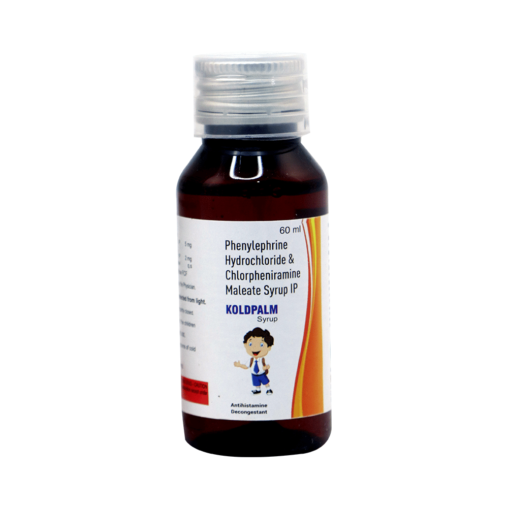 Koldpalm Syrup is a combination medicine used for the symptomatic treatment of common cold in children. It helps relieve discomfort caused by a runny nose, blocked nose, and sneezing, allowing the child to breathe more easily and feel better. Koldpalm Syrup may be given to your child with or without food. Always follow the exact dose and duration prescribed by the doctor. The dosage will depend on your child’s age, weight, and the severity of symptoms. Do not stop the medicine early, even if your child seems to be feeling better, unless advised by the doctor.Common side effects may include nausea, vomiting, or headache. These are usually mild and temporary. However, if you notice anything unusual or are concerned about how your child is responding to the medicine, consult your doctor promptly. This medicine may also cause drowsiness, so avoid engaging your child in activities that require alertness until you know how it affects them.Make sure your child stays well hydrated while taking Koldpalm Syrup. Inform your doctor if your child has any history of liver or kidney problems, as the dose may need to be adjusted accordingly.Note: As per the Ministry of Health and Family Welfare, Koldpalm Syrup should not be used in children below 4 years of age.
