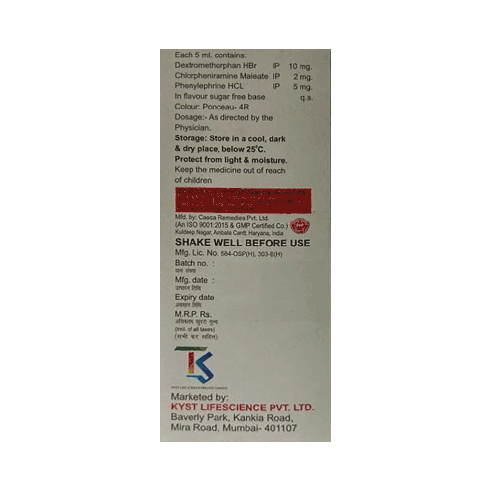 Salt Composition: Phenylephrine (5mg/5ml) + Chlorpheniramine Maleate (2mg/5ml) + Dextromethorphan Hydrobromide (10mg/5ml)