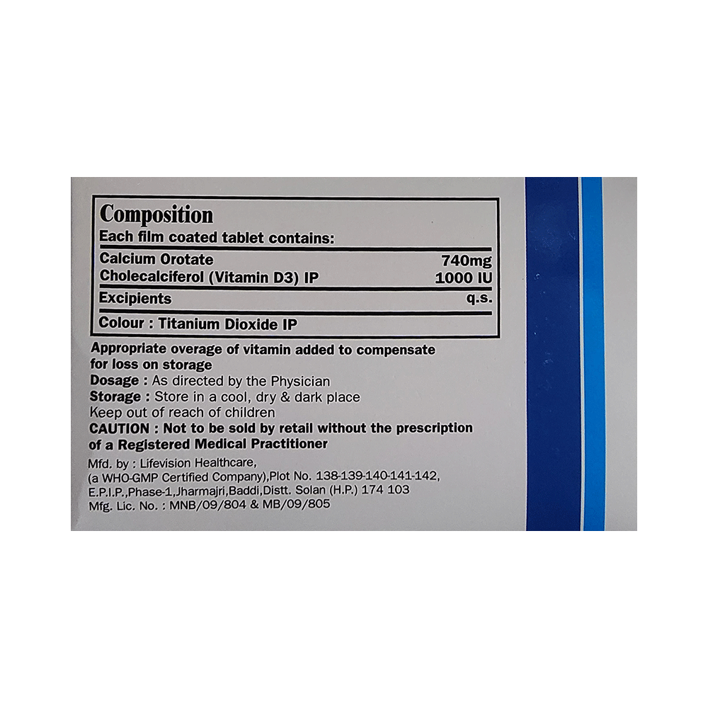 Salt Composition: Calcium Orotate (740mg) + Vitamin D3 (1000IU)