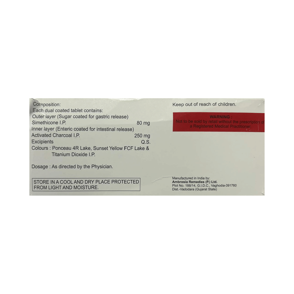 Salt Composition: Activated Charcoal (250mg) + Simethicone (80mg)