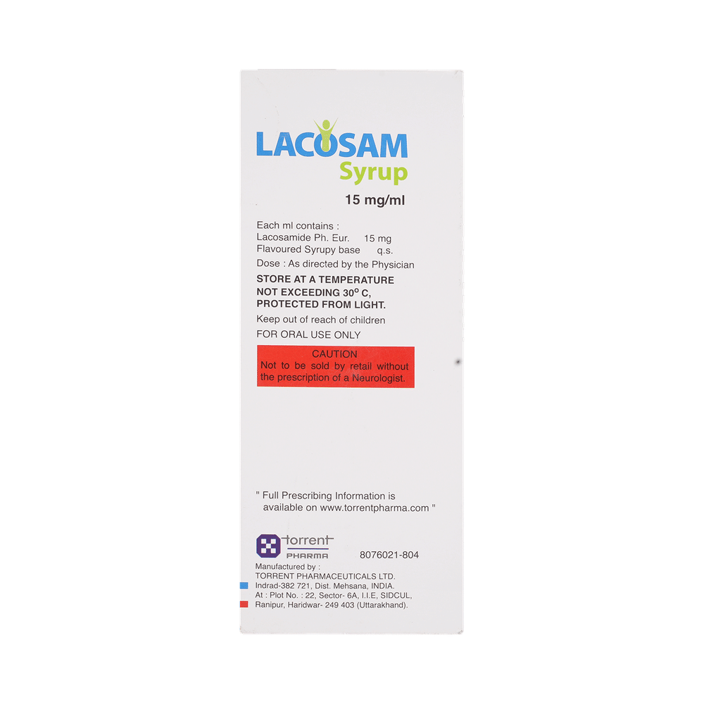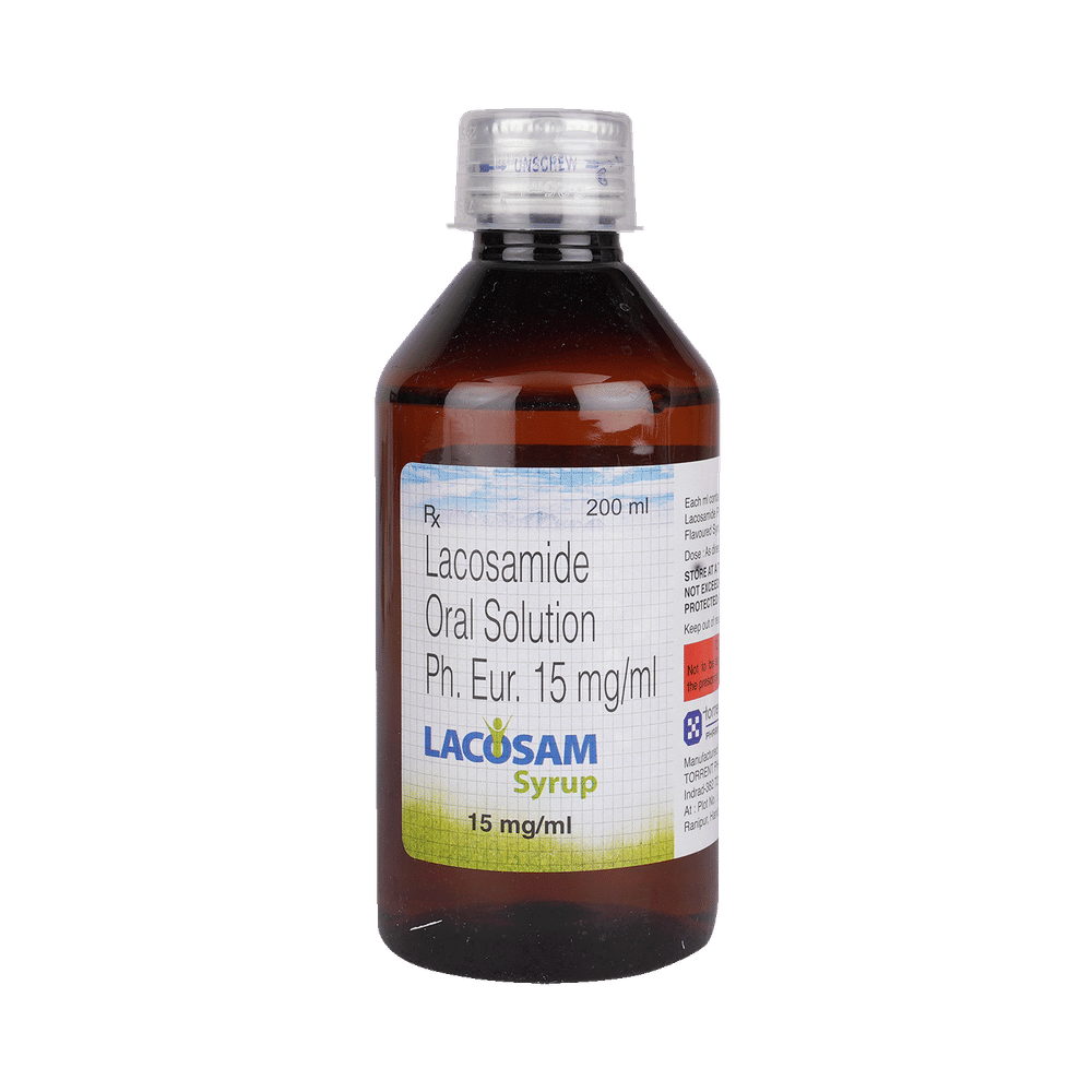 Lacosam 15mg Syrup is used to control and prevent epilepsy (seizures). It controls seizures or fits by decreasing the abnormal and excessive activity of the nerve cells in the brain. Lacosam 15mg Syrup may be taken with or without food, preferably at the same time, each day. If you have missed a dose, take it as soon as you remember as it can be life-threatening in some cases, so it is better to keep an extra stock always to avoid a missed dose. You should finish the full course of treatment even if you feel better and always consult your doctor before stopping this medicine as it may increase seizure frequency. Inform your doctor if you have any heart-related problems, before starting your treatment with this medicine.The use of this medicine may cause some side effects such as headaches, dizziness, dry mouth, muscle spasms, blurred vision, nausea, diplopia (double vision). Most of these side effects are self-limiting and they usually improve with time. Keep a watch on your weight, as using this medicine can cause weight gain. Eat healthily and exercise regularly to manage it.