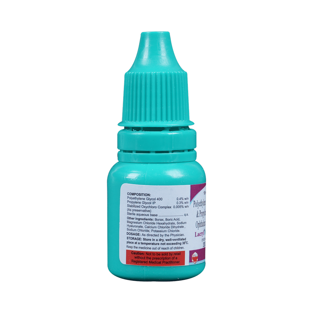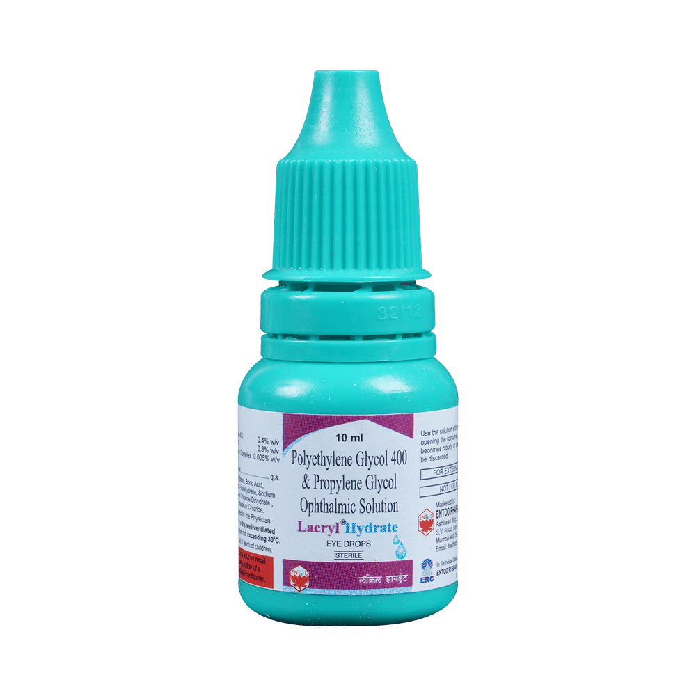 Lacryl Hydrate Eye Drop is a combination of two lubricating medicines: Polyethylene Glycol and Propylene Glycol, which treats dry eyes. They work similar to natural tears and provide temporary relief from burning and discomfort due to dryness of the eye.