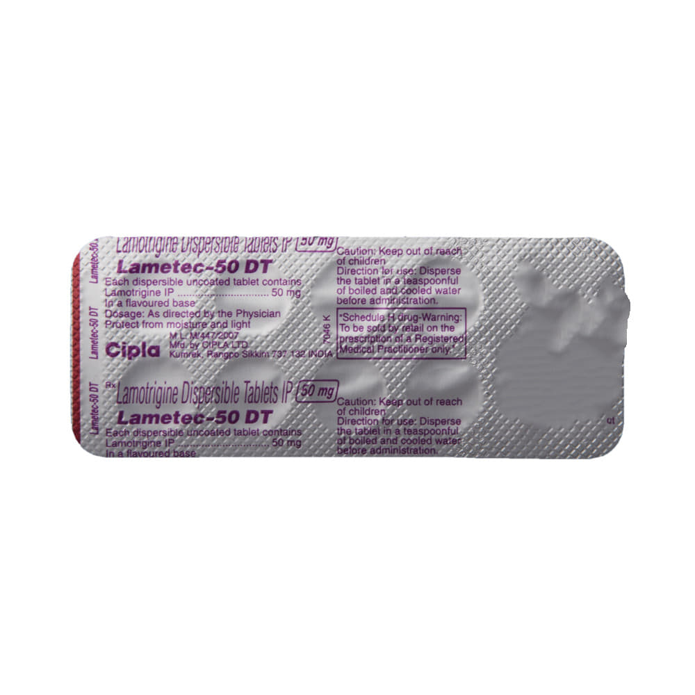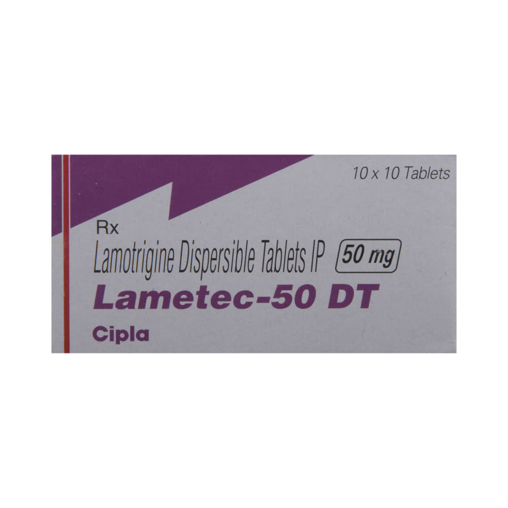 Lametec 50 DT Tablet is an anti-epileptic medication that is used to treat two conditions, epilepsy and bipolar disorder. It works by blocking the signals in the brain that trigger epileptic seizures (fits) and in another way to prevent extreme mood swings. Lametec 50 DT Tablet can be used alone or in combination with other medicines. It may be taken with or without food. Your doctor will decide the correct dose for you. This may increase gradually until your condition is stable. This medicine may take several weeks to work but it is important to take it regularly to get the maximum benefit. Do not stop taking it, even if you feel fine unless your doctor advises you to. You may have more seizures, or your bipolar disorder may get worse.The most common side effects of this medicine include skin rashes, headache, nausea, and vomiting, difficulty sleeping, and dizziness. Most side effects wear off, but if they bother you or do not go away, tell your doctor. Inform your doctor immediately if you notice a rash or peeling of the skin. There may be ways of preventing or reducing these effects. Long-term treatment can cause weakness in your bones (osteoporosis), increasing your risk of breaking a bone.Before taking this medicine, tell your doctor if you have kidney or liver problems, depression, or suicidal thoughts. Also let your healthcare professional know about all other medications you are using as some may affect, or be affected by, this medicine, including contraceptive pills. Consult your doctor if you are pregnant or breastfeeding as the dose may need to be adjusted. You should avoid driving or anything that requires concentration if this medicine makes you drowsy or dizzy. You may need frequent blood tests to check how you are responding to this medicine.