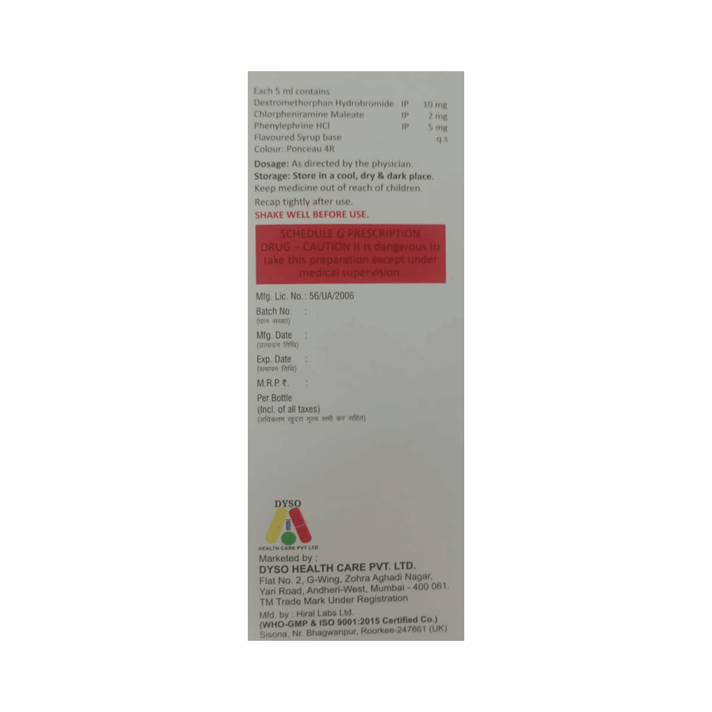Salt Composition: Phenylephrine (5mg/5ml) + Chlorpheniramine Maleate (2mg/5ml) + Dextromethorphan Hydrobromide (10mg/5ml)