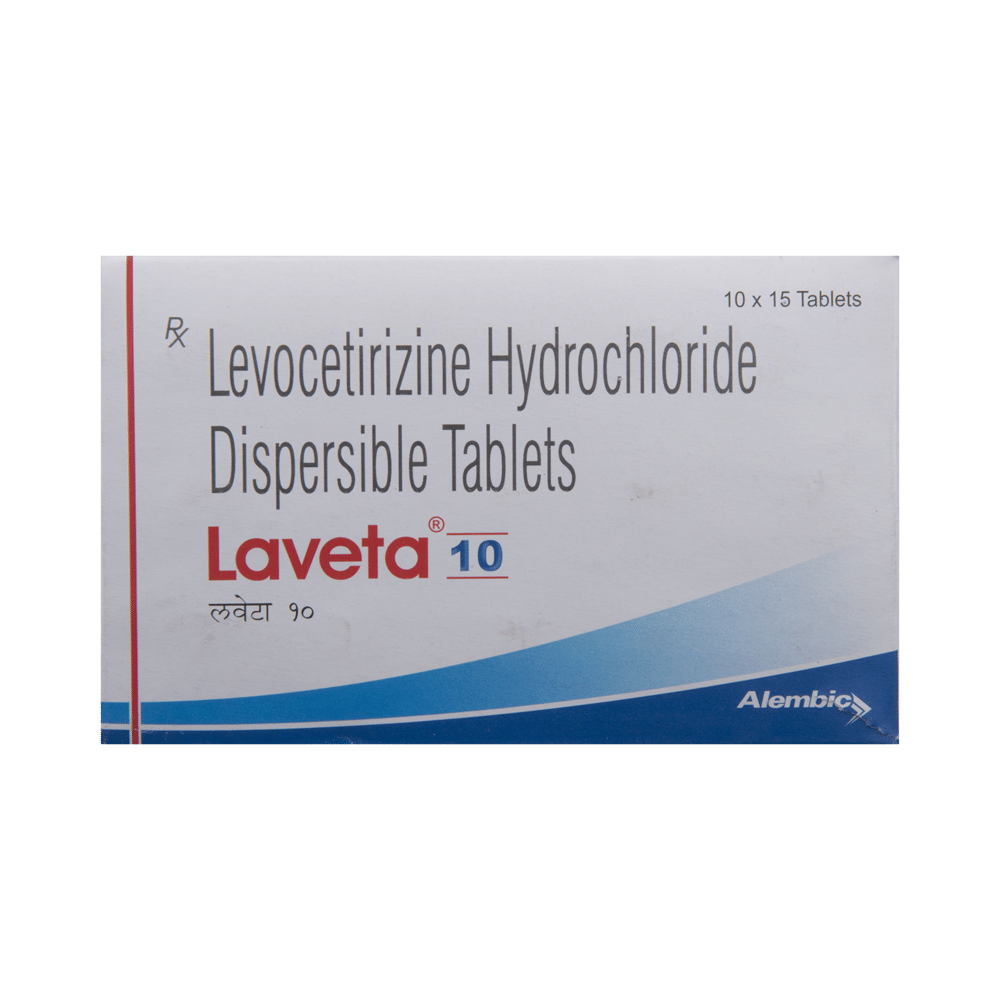 Laveta 10 Tablet DT is an antihistaminic medication. It treats allergy symptoms such as itching, swelling, and rashes by blocking the effects of a chemical messenger (histamine) in the body.