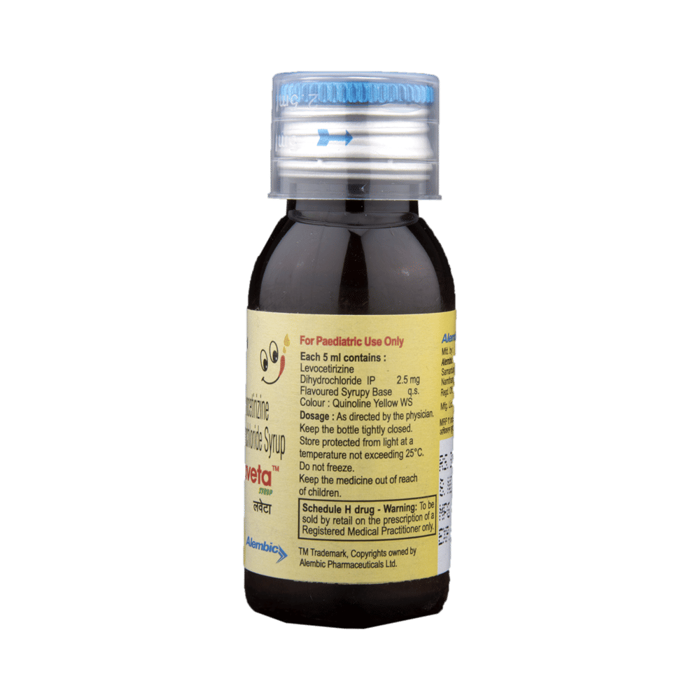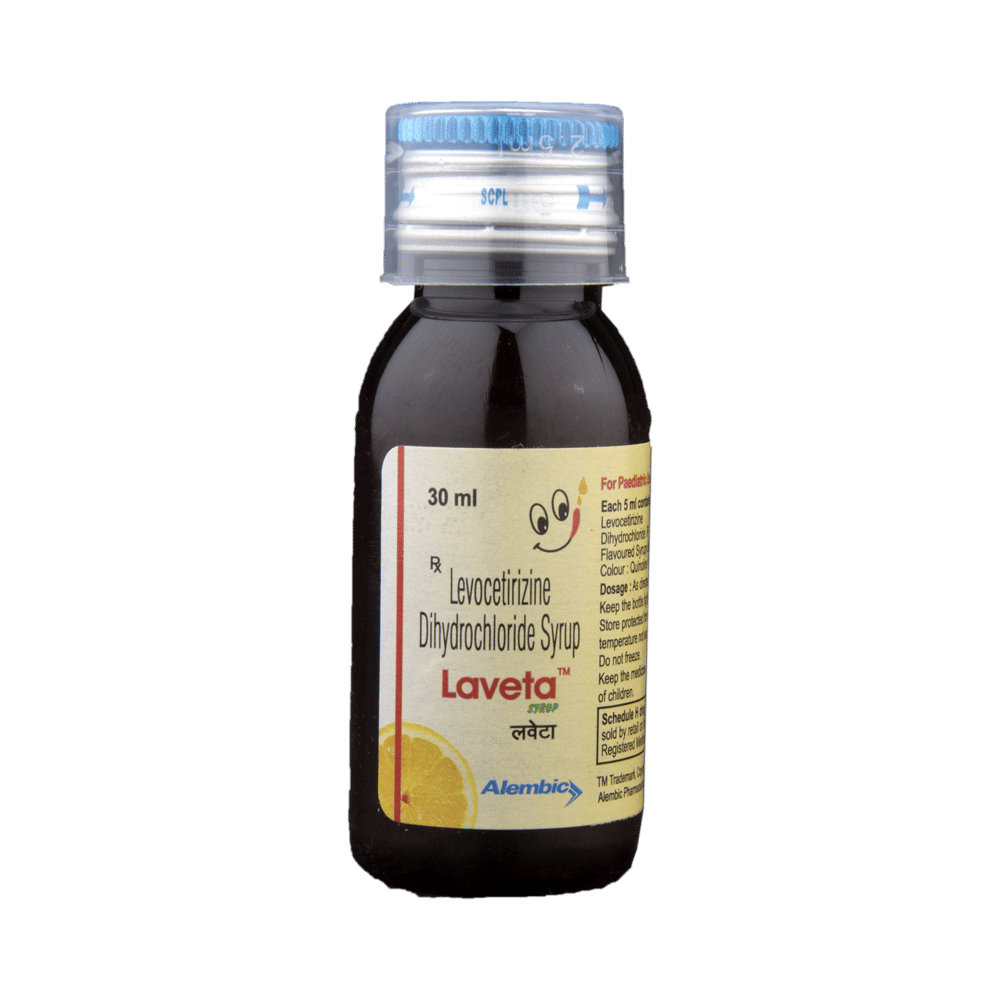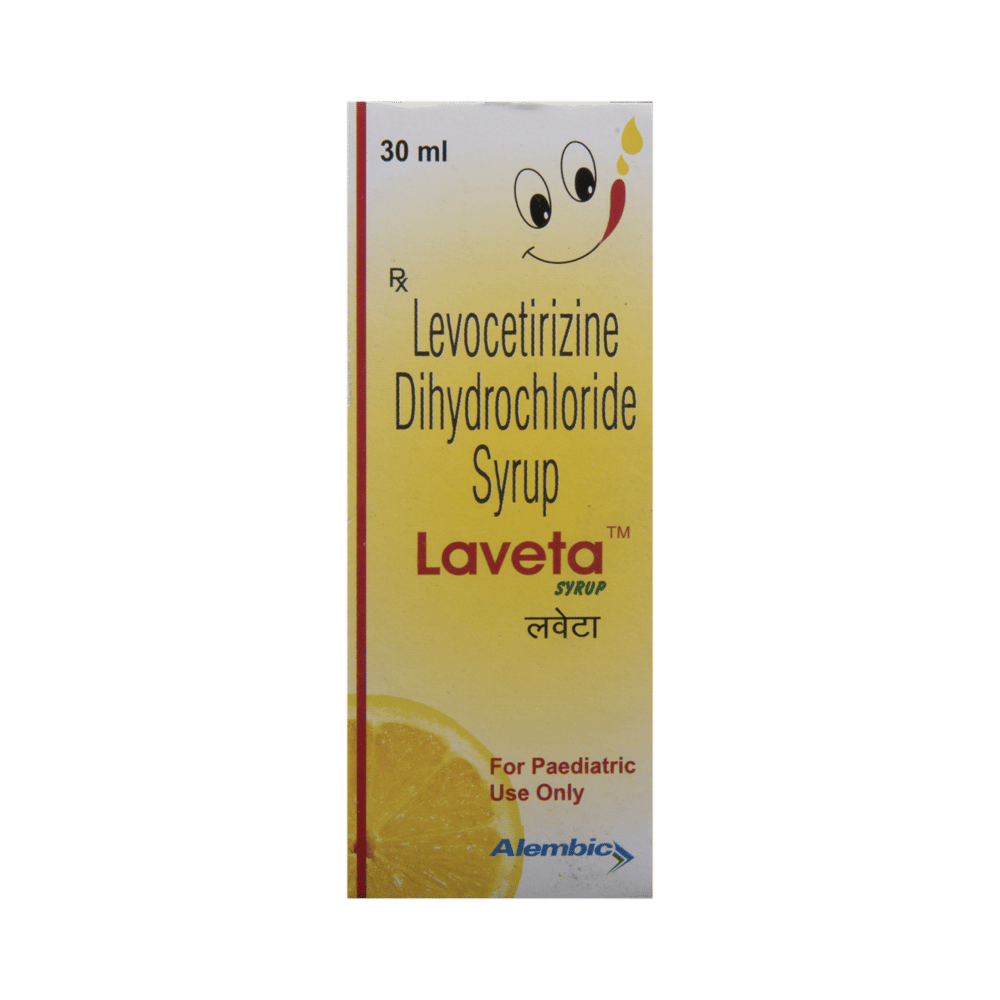 Laveta Syrup belongs to a group of medicines called antihistamines. It is used to treat various allergic conditions such as hay fever, conjunctivitis, and some skin reactions such as eczema, hives, and reactions to bites and stings. It relieves watery eyes, runny nose, sneezing, and itching. Laveta Syrup can be given with or without food. Your required dose may depend on the condition being treated. While this medicine is generally best given to your child in the evening, always follow your doctor’s instructions for proper use. Continue giving for as long as the doctor has prescribed. If it is stopped earlier than advised, your symptoms may come back.The most common side effects include feeling sleepy or dizzy, dry mouth, fatigue, fever, cough, vomiting, and diarrhea. These are usually mild and go away after a couple of days as your body adjusts to it. Consult your doctor if any of the side effects persist or worsen.Before taking it, tell your doctor if you have any kidney problems or epilepsy (seizures). Your dose may need to be modified, or this medicine may not suit you. Certain medications may interact with this one, so inform your doctor about any other medicines you are taking. If you are pregnant or breastfeeding, consult your doctor before use, even though it is not considered harmful.