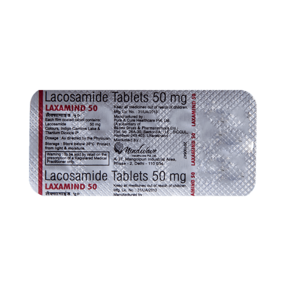 In Epilepsy/SeizuresLaxamind 50 Tablet is an anticonvulsant (or anti-epileptic) medicine that works by decreasing the nerve impulses which cause the seizures. By controlling the frequency of seizures, it will help you go about your daily activities with more confidence. It helps reduce symptoms such as confusion, uncontrollable jerking movements, loss of awareness, and fear or anxiety.This medicine is not associated with any physical or psychological dependence (addiction) but it should not be stopped suddenly. It must be taken regularly as prescribed to be effective. Missing doses may trigger a seizure.