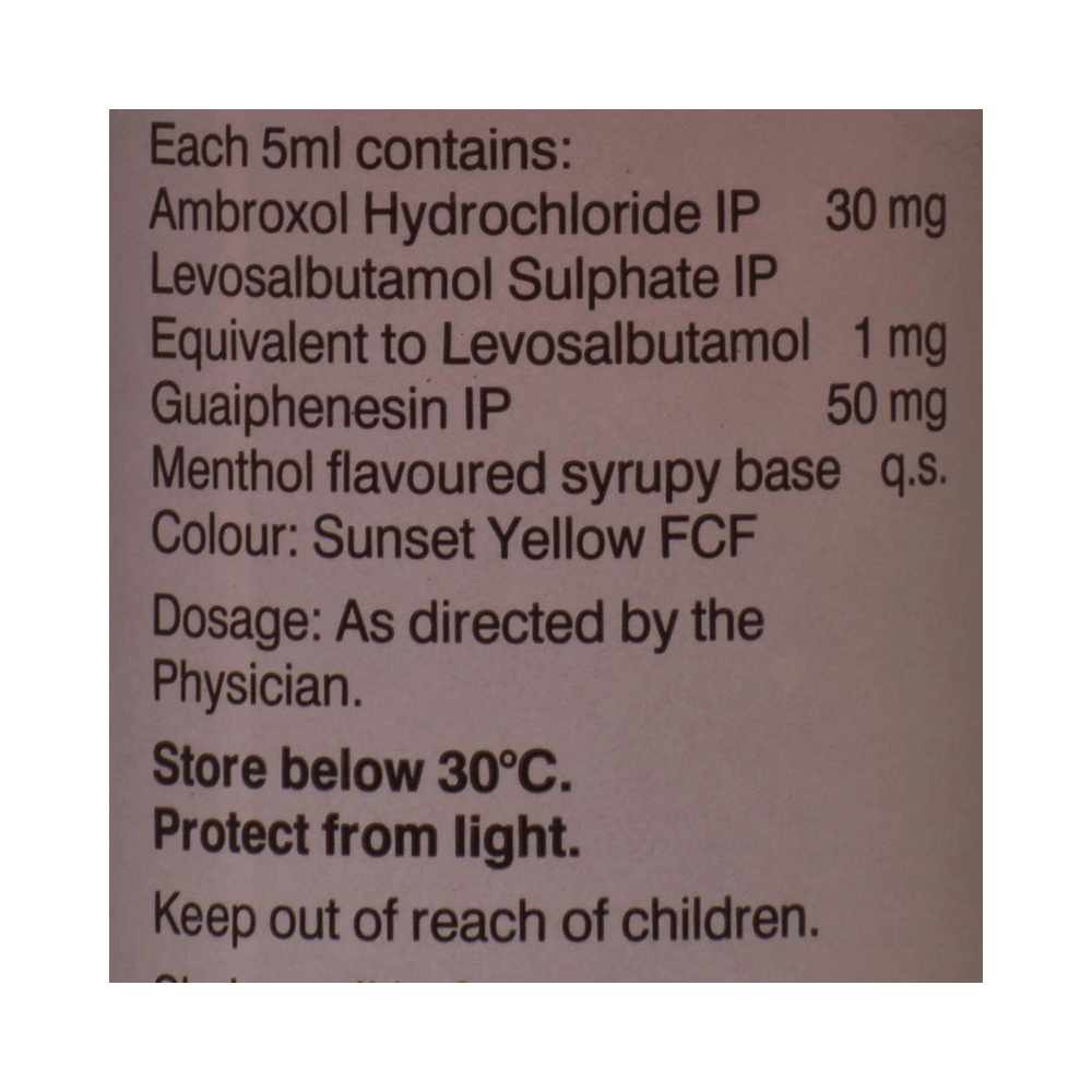 Salt Composition: Ambroxol (30mg/5ml) + Levosalbutamol (1mg/5ml) + Guaifenesin (50mg/5ml)