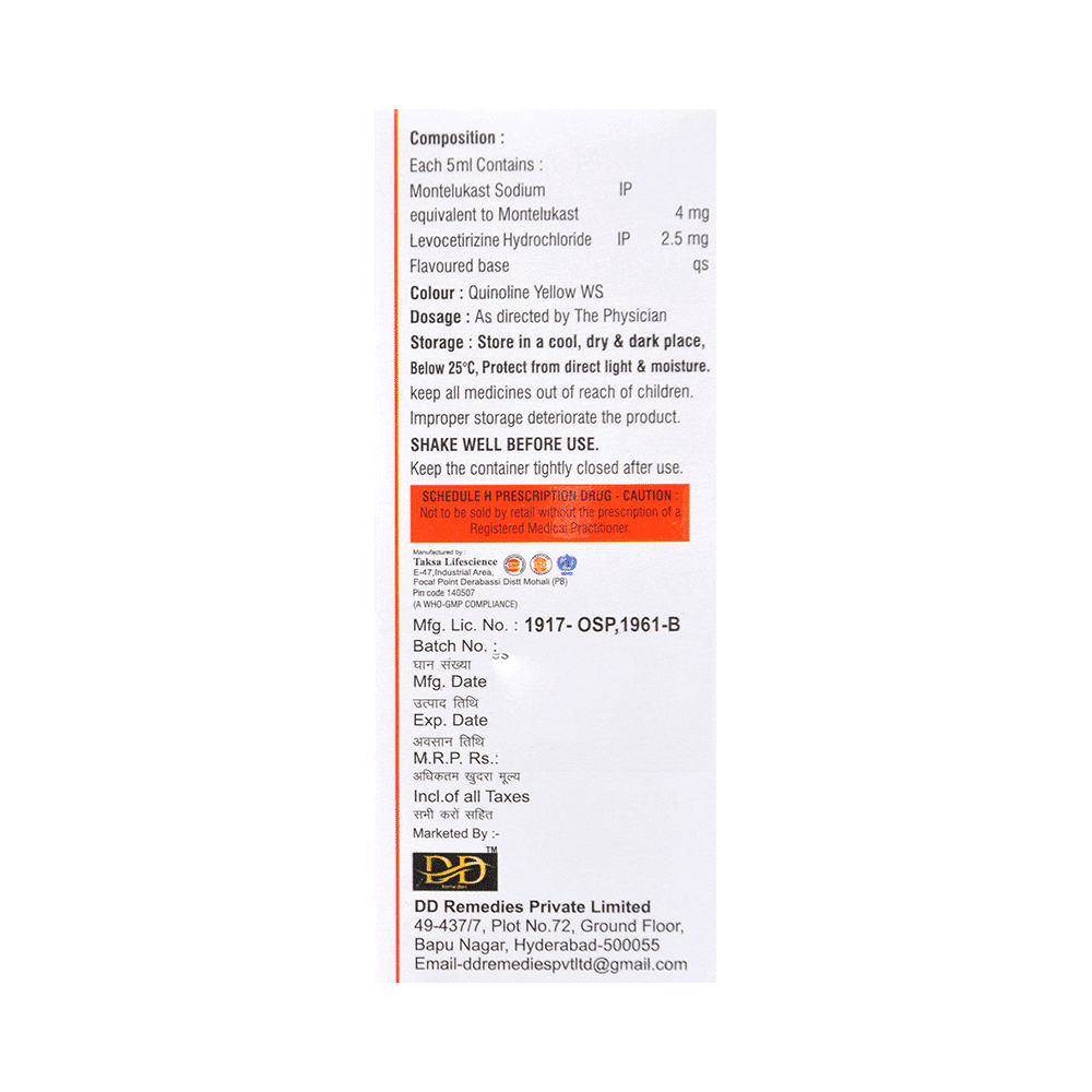 Salt Composition: Levocetirizine (2.5mg) + Montelukast (4mg)