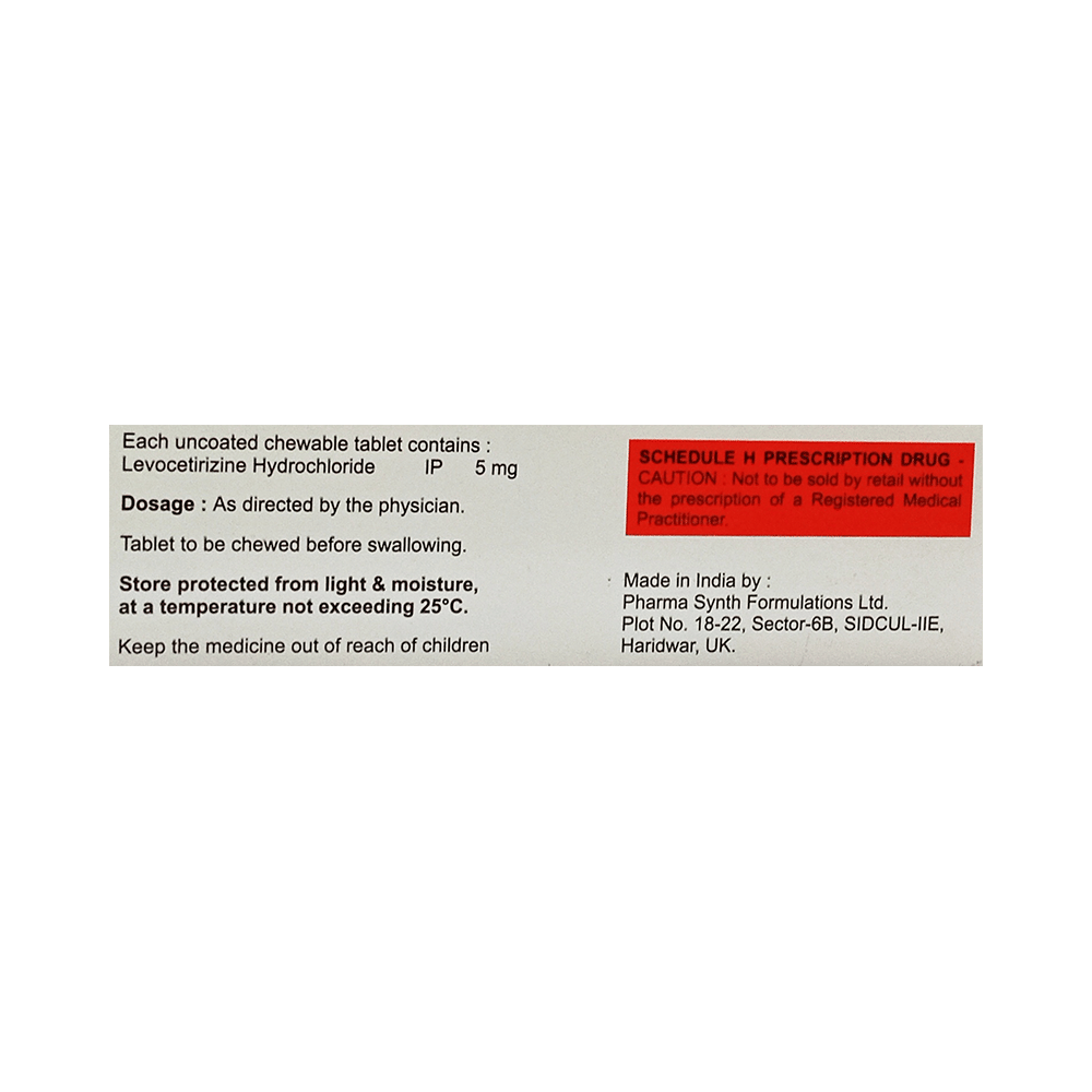 Salt Composition: Levocetirizine (5mg)