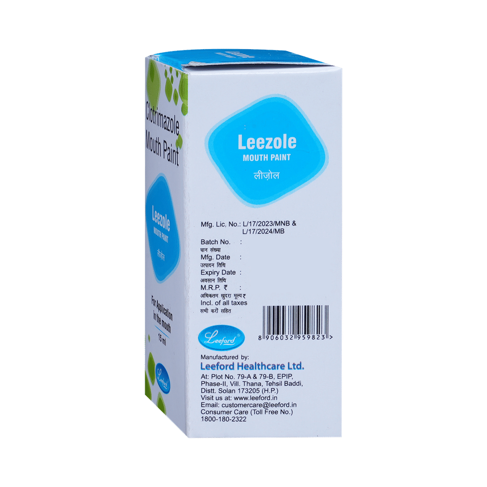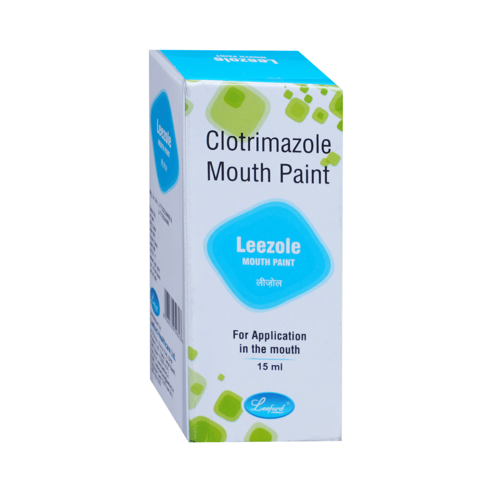 Leezole Mouth Paint is an antifungal medication which treats fungal infections of the mouth. It works by binding with the mucosa (the inner surface of the lips and cheeks) from where it is slowly released into the saliva. The fungal cell membranes are destroyed thereby killing the fungi.