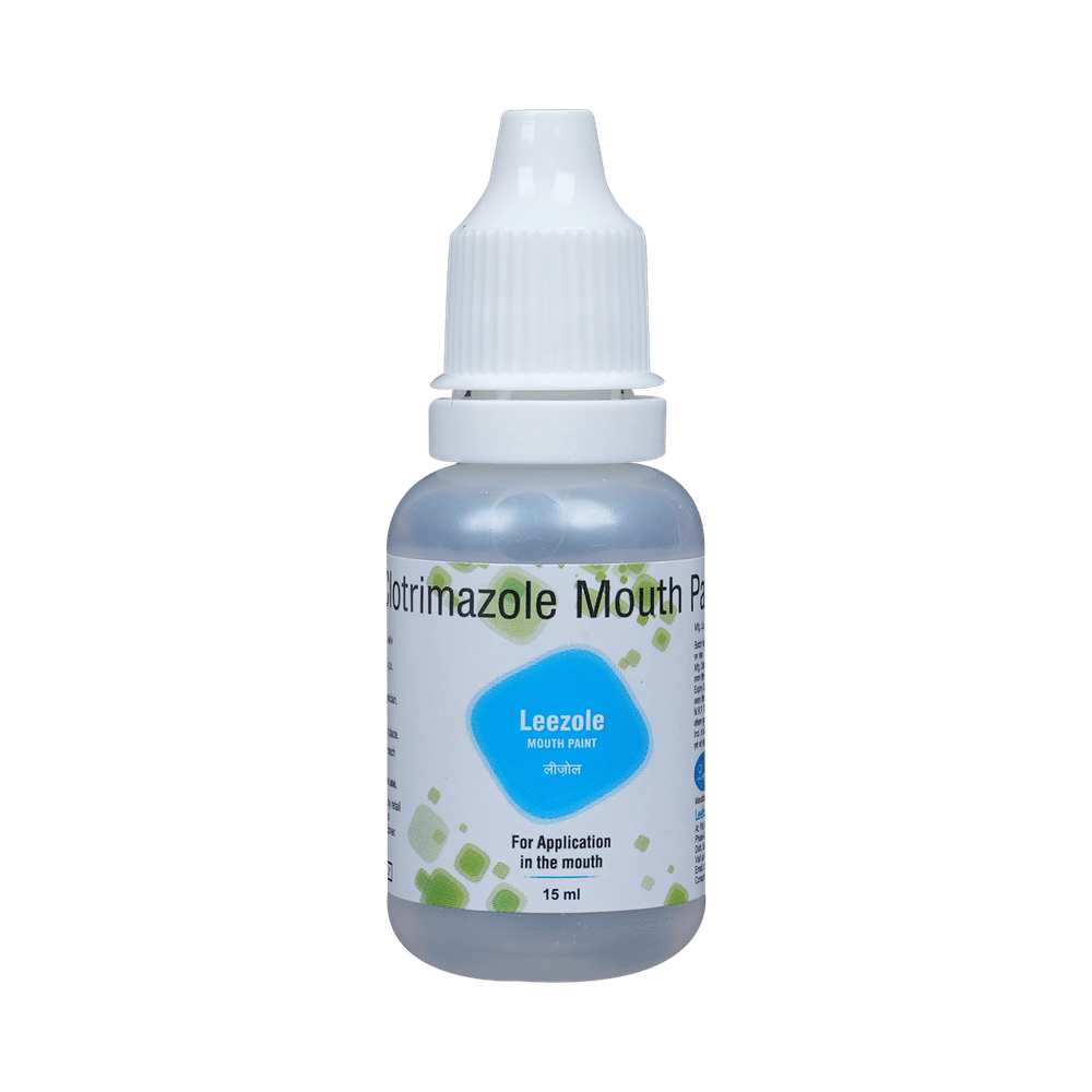 Leezole Mouth Paint is an antifungal medication. It treats fungal infections of the mouth. It kills fungi by destroying the fungal cell membrane. Leezole Mouth Paint should be applied on the site of lesion inside the mouth. Follow the doctor’s instruction or use it in the dose and duration suggested by the doctor. Do not stop using it until you have finished the complete course, even when you feel better. You must have to avoid eating, drinking, or smoking for at least 30 minutes after using it.It is a safe medicine with few side effects, but you may get allergic reactions like swelling of the lips, throat or face, and trouble breathing. Inform your doctor if bothers you or does not go away.It is not likely that other medicines you take by mouth or injection will affect the way it works but talk to your doctor before using it if you have used a similar medicine before and had an allergic reaction. This medicine should only be used if it is clearly needed during pregnancy.