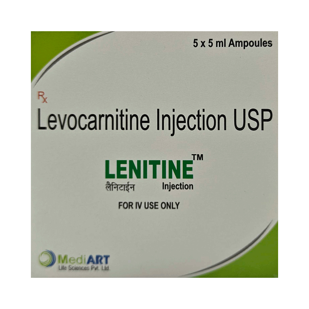 Lenitine 1gm Injection belongs to a class of medications called amino acids. It is used in the treatment of carnitine deficiency. It helps the body produce energy and improves the efficiency of body function. Lenitine 1gm Injection is generally administered by a healthcare professional. You should not self-administer this at home. It may cause injection site reactions like pain, swelling, redness that are generally mild and temporary.Lenitine 1gm Injection is usually a safe medicine, however, it may cause nausea, vomiting, diarrhea, abdominal pain, and reactions at the site of injection such as swelling, redness, and pain. Your doctor may monitor your blood glucose levels regularly while you are taking the medicine.Before starting the medicine, inform your doctor if you have any other medical conditions or are taking any other medications. Patients with severe kidney disease should not take this medicine unless prescribed by the doctor.