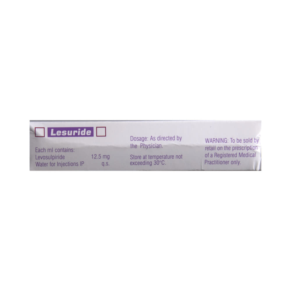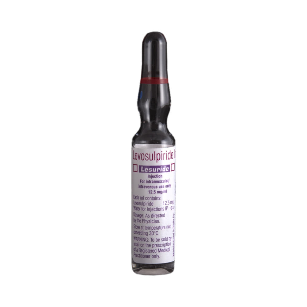 Lesuride Injection is a medicine used in the treatment of gastrointestinal problems like functional dyspepsia, nausea, vomiting, and diabetic gastroparesis. It improves food movement and treats disorders of the stomach and intestines. Lesuride Injection is taken by mouth with or without food. However, it is advisable to take it at the same time each day as this helps to maintain consistent level of medicine in the body. Take this medicine in the dose and duration as advised by your doctor and if you have missed a dose, take it as soon as you remember. Some common side effects of this medicine includes headache and fatigue. It also causes dizziness and sleepiness, so do not drive or do anything that requires mental focus until you know how this medicine affects you. You should immediately consult doctor if you have absence of periods, abnormal milk secretion, changes in sexual desire, or fever after taking this medicine.