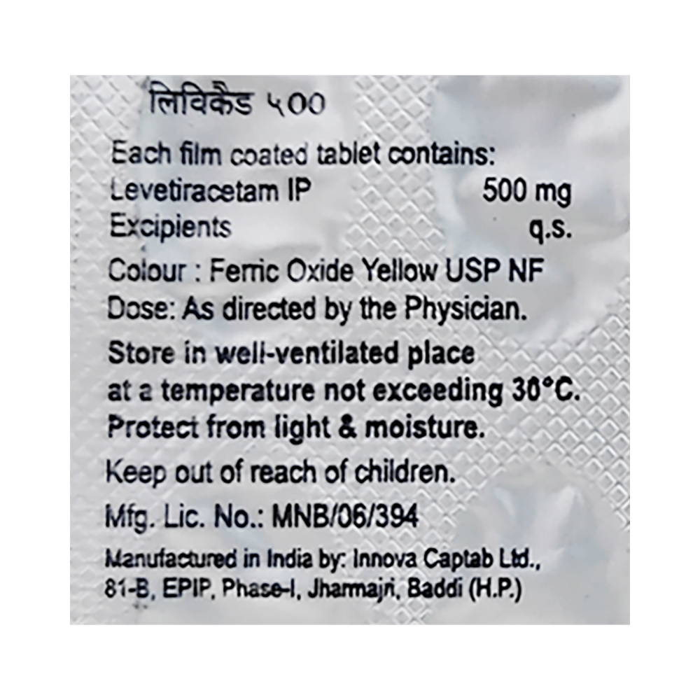 Levecad 500 Tablet is an anti-epileptic medicine used to treat seizures (fits) in epilepsy. It can be used alone or along with other medicines. It helps to prevent seizures for as long as you continue to take it. Levecad 500 Tablet suppresses the abnormal electrical activity in the brain. You can take it with or without food but try to take it at the same time each day to get the most benefit. The dose will depend on your condition and how you respond to the medicine. Your doctor will advise the right dose for you. It is generally advised as a long-term treatment. You should continue taking it for as long as your doctor has told you to, even if you feel well. If you stop or miss doses your seizures could get worse.Some common side effects of this medicine include headache, irritation, sleepiness, behavior changes, aggressive behavior, and decreased appetite. Side effects are more common during the first few weeks and usually lessen as your body gets used to the medicine. Most of these side effects do not need medical attention, but some of them can be serious. A small number of people being treated with this medicine have had thoughts of harming or killing themselves. Contact your doctor if your mood changes for the worse.Before taking it, you should tell your doctor if you have kidney problems, depression, or suicidal thoughts and if you are pregnant, planning to become pregnant, or breastfeeding. Your doctor may suggest regular blood tests to monitor your kidney function while taking this medicine.