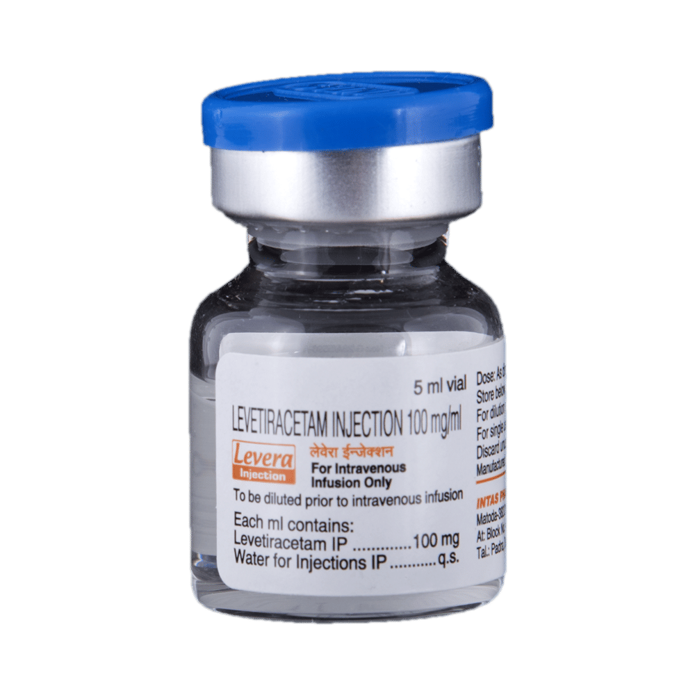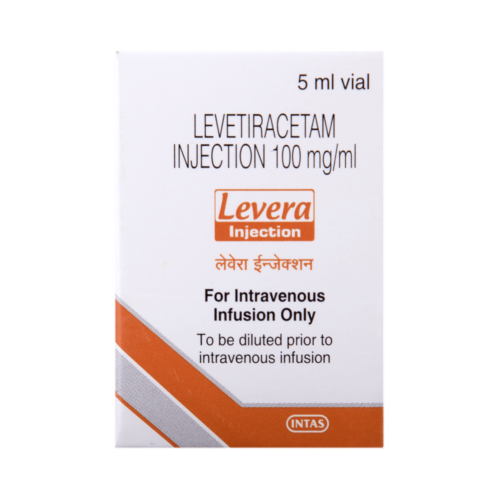 LeVERA Injection is an anti-epileptic medicine used to treat seizures (fits) in epilepsy. It can be used alone or along with other medicines. It helps to prevent seizures for as long as you continue to take it. LeVERA Injection is given as an infusion (slow drip) into a vein under the supervision of a healthcare professional. It is generally used for short-term control of seizures when treatment with oral medication is not feasible (eg. when the patient is unconscious). You should continue taking it for as long as your doctor has told you to, even if you feel well. If you stop or miss doses your seizures could get worse. Your doctor is likely to prescribe you oral medicines for long-term seizure control, after treatment with this injection has been completed.Some common side effects of this medicine include dizziness, headache, infection, irritation, nasopharyngitis, sleepiness, aggressive behavior, and decreased appetite. You may also experience behavioral changes, aggressive behavior, irritation, agitation, etc. Side effects are more common during the first few days and usually lessen as your body gets used to the medicine. Most of these side effects do not need medical attention, but some of them can be serious. Let your doctor know right away if you have developed an allergic reaction (hives, itching, weakness, dizziness, difficulty in breathing, or swelling of face, tongue, and throat), a skin rash, or persistent behavioral changes like confusion, forgetfulness, feeling irritable, increased aggression or hostility. There may be ways of preventing or reducing them. A small number of people being treated with this medicine have had thoughts of harming or killing themselves. Contact your doctor if your mood changes for the worse.Before taking it, you should tell your doctor if you have kidney problems, depression or suicidal thoughts and if you are pregnant or planning to become pregnant. Avoid alcohol while taking this medicine, as it may increase the risk of seizures and worsen the side effects such as drowsiness and dizziness. Drowsiness and dizziness may affect your ability to drive or operate machinery. Your kidney function may need to be tested periodically while taking this medicine.