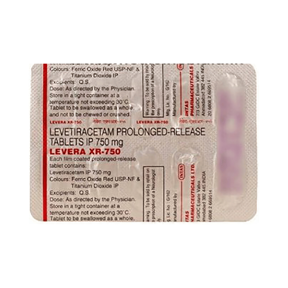 LeVERA XR 750 Tablet is an anti-epileptic medicine used to treat seizures (fits) in epilepsy. It can be used alone or along with other medicines. It helps to prevent seizures for as long as you continue to take it. LeVERA XR 750 Tablet suppresses the abnormal electrical activity in the brain. You can take it with or without food but try to take it at the same time each day to get the most benefit. The dose will depend on your condition and how you respond to the medicine. Your doctor will advise the right dose for you. It is generally advised as a long-term treatment. You should continue taking it for as long as your doctor has told you to, even if you feel well. If you stop or miss doses your seizures could get worse.Some common side effects of this medicine include headache, irritation, sleepiness, behavior changes, aggressive behavior, and decreased appetite. Side effects are more common during the first few weeks and usually lessen as your body gets used to the medicine. Most of these side effects do not need medical attention, but some of them can be serious. A small number of people being treated with this medicine have had thoughts of harming or killing themselves. Contact your doctor if your mood changes for the worse.Before taking it, you should tell your doctor if you have kidney problems, depression, or suicidal thoughts and if you are pregnant, planning to become pregnant, or breastfeeding. Your doctor may suggest regular blood tests to monitor your kidney function while taking this medicine.