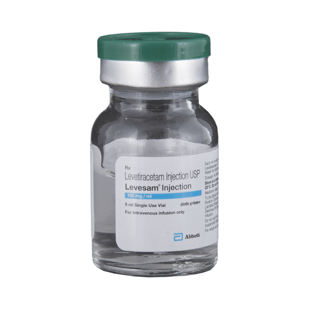 Levesam Injection is an anti-epileptic medicine used to treat seizures (fits) in epilepsy. It can be used alone or along with other medicines. It helps to prevent seizures for as long as you continue to take it. Levesam Injection is given as an infusion (slow drip) into a vein under the supervision of a healthcare professional. It is generally used for short-term control of seizures when treatment with oral medication is not feasible (eg. when the patient is unconscious). You should continue taking it for as long as your doctor has told you to, even if you feel well. If you stop or miss doses your seizures could get worse. Your doctor is likely to prescribe you oral medicines for long-term seizure control, after treatment with this injection has been completed.Some common side effects of this medicine include dizziness, headache, infection, irritation, nasopharyngitis, sleepiness, aggressive behavior, and decreased appetite. You may also experience behavioral changes, aggressive behavior, irritation, agitation, etc. Side effects are more common during the first few days and usually lessen as your body gets used to the medicine. Most of these side effects do not need medical attention, but some of them can be serious. Let your doctor know right away if you have developed an allergic reaction (hives, itching, weakness, dizziness, difficulty in breathing, or swelling of face, tongue, and throat), a skin rash, or persistent behavioral changes like confusion, forgetfulness, feeling irritable, increased aggression or hostility. There may be ways of preventing or reducing them. A small number of people being treated with this medicine have had thoughts of harming or killing themselves. Contact your doctor if your mood changes for the worse.Before taking it, you should tell your doctor if you have kidney problems, depression or suicidal thoughts and if you are pregnant or planning to become pregnant. Avoid alcohol while taking this medicine, as it may increase the risk of seizures and worsen the side effects such as drowsiness and dizziness. Drowsiness and dizziness may affect your ability to drive or operate machinery. Your kidney function may need to be tested periodically while taking this medicine.
