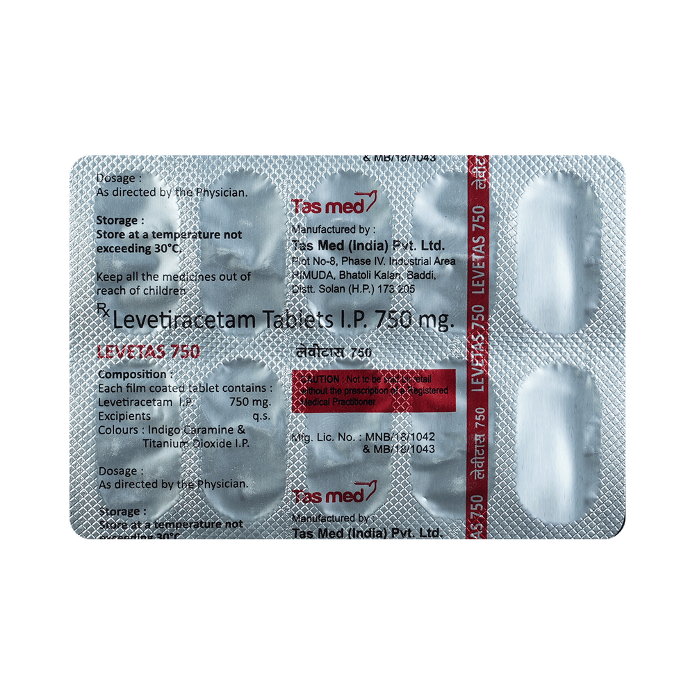 Levetas 750 Tablet is an anti-epileptic medicine used to treat seizures (fits) in epilepsy. It can be used alone or along with other medicines. It helps to prevent seizures for as long as you continue to take it. Levetas 750 Tablet suppresses the abnormal electrical activity in the brain. You can take it with or without food but try to take it at the same time each day to get the most benefit. The dose will depend on your condition and how you respond to the medicine. Your doctor will advise the right dose for you. It is generally advised as a long-term treatment. You should continue taking it for as long as your doctor has told you to, even if you feel well. If you stop or miss doses your seizures could get worse.Some common side effects of this medicine include headache, irritation, sleepiness, behavior changes, aggressive behavior, and decreased appetite. Side effects are more common during the first few weeks and usually lessen as your body gets used to the medicine. Most of these side effects do not need medical attention, but some of them can be serious. A small number of people being treated with this medicine have had thoughts of harming or killing themselves. Contact your doctor if your mood changes for the worse.Before taking it, you should tell your doctor if you have kidney problems, depression, or suicidal thoughts and if you are pregnant, planning to become pregnant, or breastfeeding. Your doctor may suggest regular blood tests to monitor your kidney function while taking this medicine.