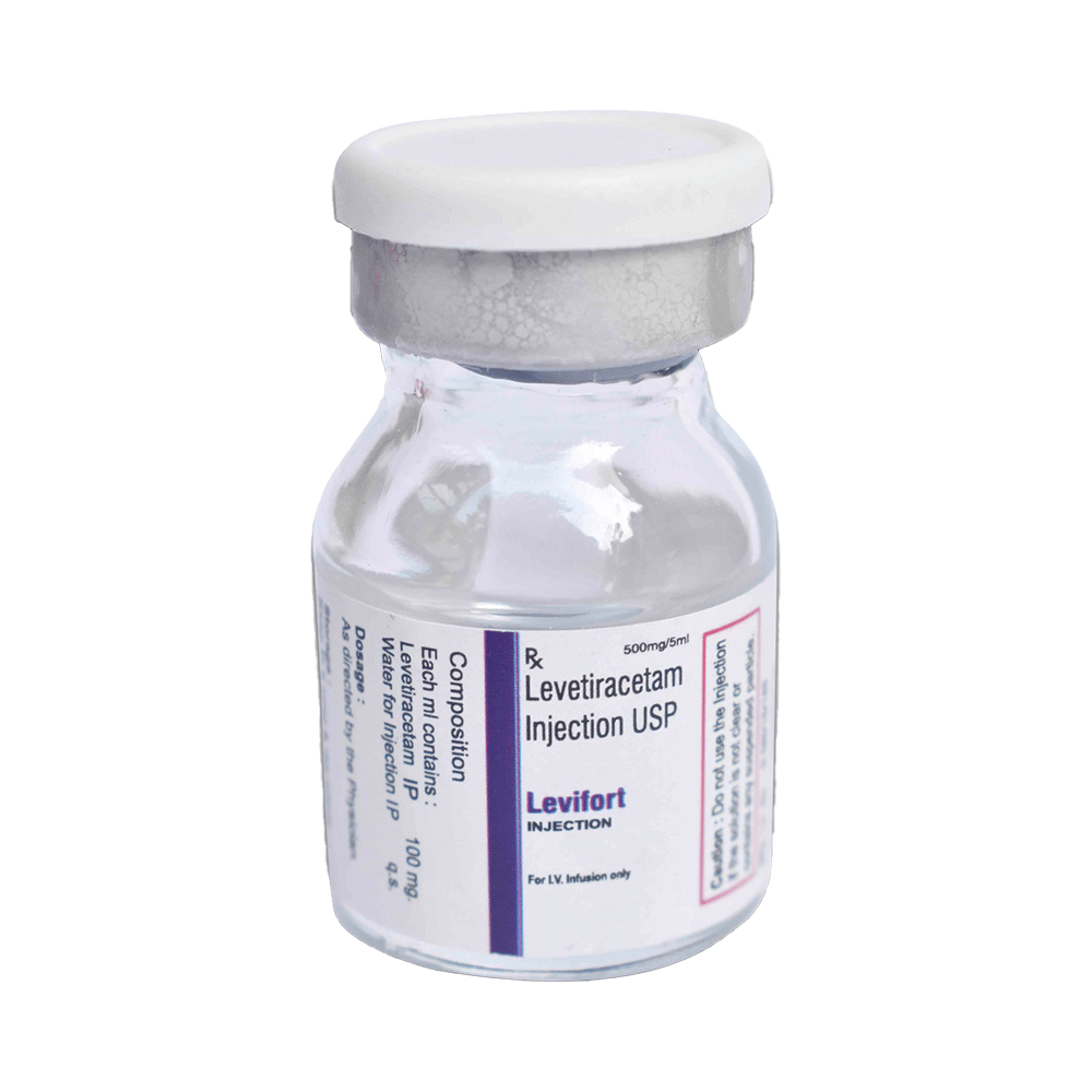 Levifort Injection is an anti-epileptic medicine used to treat seizures (fits) in epilepsy. It can be used alone or along with other medicines. It helps to prevent seizures for as long as you continue to take it. Levifort Injection is given as an infusion (slow drip) into a vein under the supervision of a healthcare professional. It is generally used for short-term control of seizures when treatment with oral medication is not feasible (eg. when the patient is unconscious). You should continue taking it for as long as your doctor has told you to, even if you feel well. If you stop or miss doses your seizures could get worse. Your doctor is likely to prescribe you oral medicines for long-term seizure control, after treatment with this injection has been completed.Some common side effects of this medicine include dizziness, headache, infection, irritation, nasopharyngitis, sleepiness, aggressive behavior, and decreased appetite. You may also experience behavioral changes, aggressive behavior, irritation, agitation, etc. Side effects are more common during the first few days and usually lessen as your body gets used to the medicine. Most of these side effects do not need medical attention, but some of them can be serious. Let your doctor know right away if you have developed an allergic reaction (hives, itching, weakness, dizziness, difficulty in breathing, or swelling of face, tongue, and throat), a skin rash, or persistent behavioral changes like confusion, forgetfulness, feeling irritable, increased aggression or hostility. There may be ways of preventing or reducing them. A small number of people being treated with this medicine have had thoughts of harming or killing themselves. Contact your doctor if your mood changes for the worse.Before taking it, you should tell your doctor if you have kidney problems, depression or suicidal thoughts and if you are pregnant or planning to become pregnant. Avoid alcohol while taking this medicine, as it may increase the risk of seizures and worsen the side effects such as drowsiness and dizziness. Drowsiness and dizziness may affect your ability to drive or operate machinery. Your kidney function may need to be tested periodically while taking this medicine.